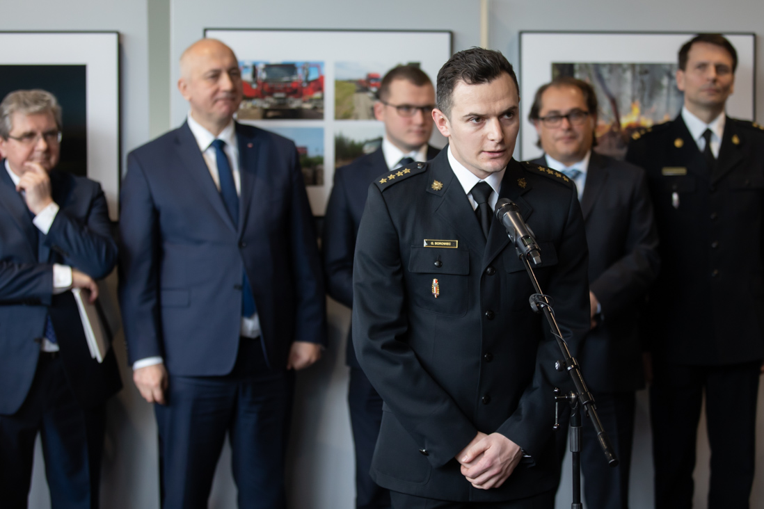 - Takimi akcjami, jak misja polskich strażaków w Szwecji, pokazujemy, że można na nas liczyć i jesteśmy wiarygodni. Ta wystawa jest dowodem tej wiarygodności – powiedział minister Joachim Brudziński w trakcie otwarcia wystawy. Podczas uroczystości w Parlamencie Europejskim obecni byli strażacy, którzy latem ubiegłego roku udali się z pomocą do Szwecji. To właśnie oni są autorami większości fotografii. Wystawa „Polska solidarna w Europie. Polscy strażacy w Szwecji” opisuje historię wyjazdu, służby na miejscu i powrotu do Polski funkcjonariuszy Państwowej Straży Pożarnej.