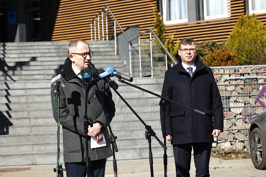 Wcześniej wiceminister Błażej Poboży i Artur Chojecki, wojewoda warmińsko-mazurski spotkali się z pracownikami SP ZOZ MSWiA z Warmińsko-Mazurskim Centrum Onkologii w Olsztynie. Odwiedzili nowy Zakład Endoskopii i Zakład Radiologii Interwencyjnej szpitala.