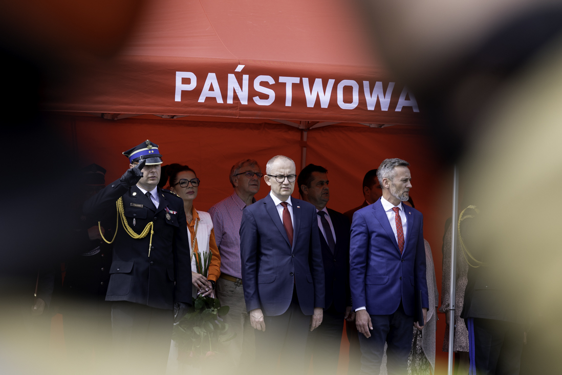 Po południu wiceminister Błażej Poboży odwiedził Węgorzewo. Podczas uroczystości zorganizowanych na placu przed Komendą Powiatową PSP w Węgorzewie, Podsekretarz stanu w MSWiA powiedział, że dzięki zaangażowaniu strażaków mieszkańcy mogą liczyć na szybką i sprawną pomoc. Dodał przy tym, że kolejne jednostki otrzymują nowoczesny sprzęt, który jest wykorzystywany do prowadzenia akcji ratowniczych.