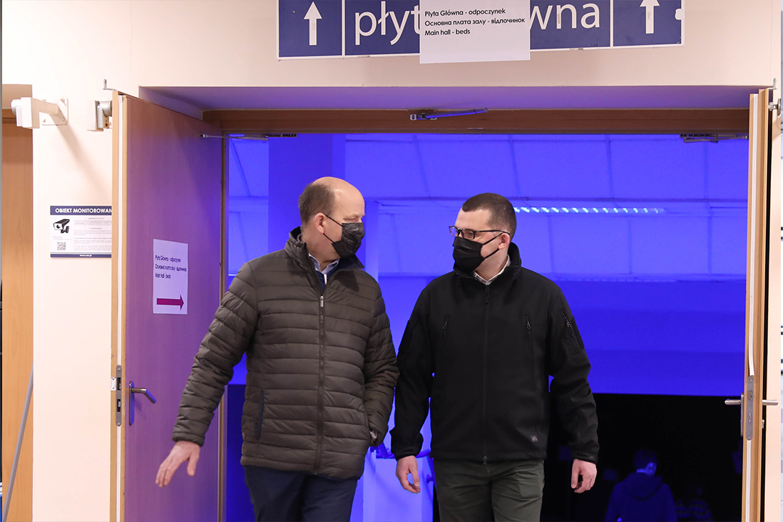– Впродовж останньої доби до нас прибуло з України 106 тис. осіб. Це найбільше число біженців за минулі 10 днів. Увесь час прибувають нові особи. Від моменту початку війни Росії з Україною, польсько-український кордон перетнуло майже 800 тис. осіб, які втікають від бомб, що падають на їх рідну землю, – повідомив заступник міністра Павел Шефернакер на ранковому брифінгу. Він відбувся перед спортивним комплексом «Торвар», що зараз є рецепційним центром для біженців. У брифінгу також взяв участь Константи Радзівіл, воєвода Мазовецького воєводства.