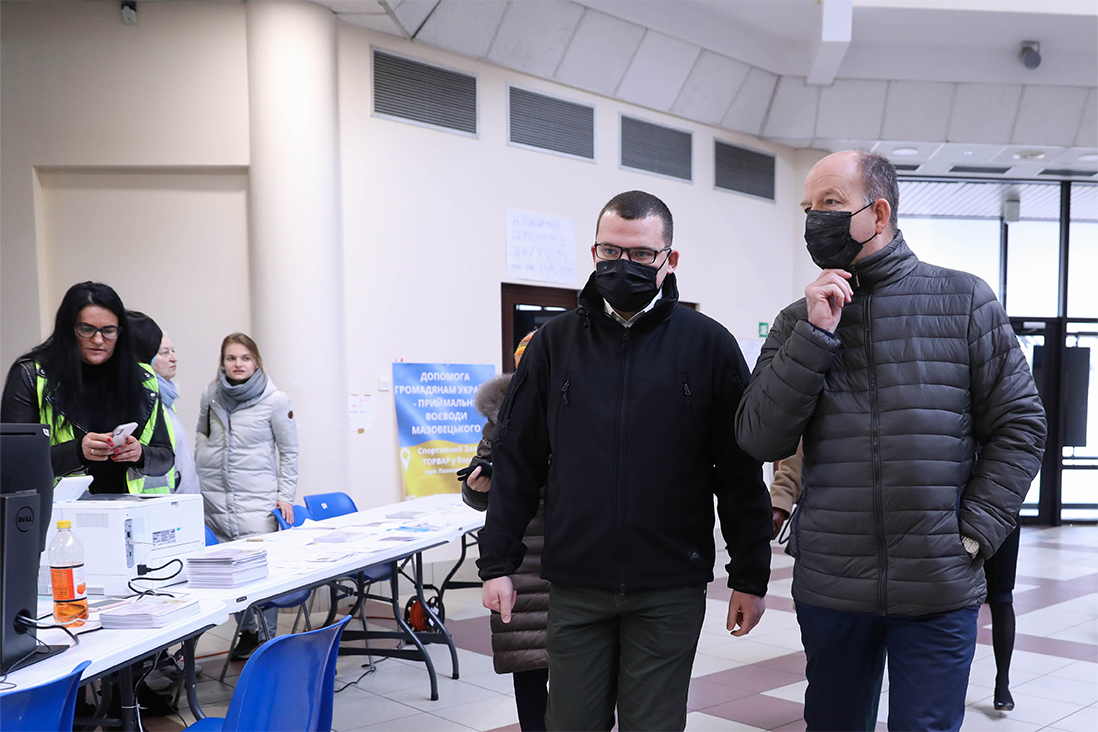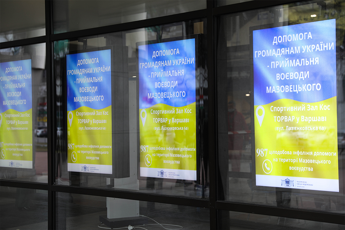 В усій Польщі зараз працює 30 рецепційних центрів, відчинені також невеликі пункти прийому іноземців, що організовують органи місцевого самоврядування. Працює 27 інформаційних пунктів, у яких громадяни України можуть одержати інформацію щодо допомоги, яка надається в Польщі. – Рецепційні центри, як на кордоні, так і в містах, переповнені. Щойно я і воєвода Мазовецького воєводства були у рецепційному центрі, що влаштовано у спортивному комплексі «Торвар» у Варшаві. Ми його утворили буквально вчора, – сказав Павел Шефернакер, держсекретар Міністерства внутрішніх справ і адміністрації. Він зазначив, що на даний момент у рецепційному центрі, що у спортивному комплексі «Торвар», перебуває близько 500 осіб. – Біженці прибувають з різних місць, з залізничних та автобусних вокзалів. Вони знаходять тут притулок на певний час, щоб потім вирушити далі, в Польщу. – додав заступник міністра.