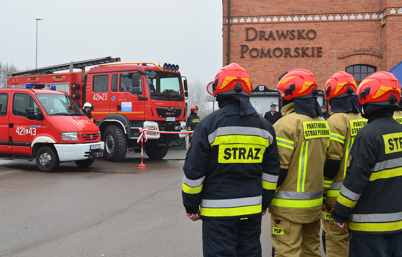 Komenda Powiatowa PSP w Drawsku Pomorskim działa w trudnych warunkach terenowych m.in. na zalesionym obszarze największego poligonu wojskowego w Europie. Działanie służb ratowniczych wymaga profesjonalnego sprzętu i wyposażenia strażaków. W piątek (15 lutego br.) Jednostka Ratowniczo-Gaśnicza w Drawsku Pomorskim wprowadziła do służby średni wóz bojowy, który sprawdza się właśnie w trudnych warunkach. Pojazd jest wyposażony w profesjonalny sprzęt niezbędny do działań pożarniczych i ratowniczych. Zakup nowego pojazdu ratowniczo-gaśniczego był możliwy dzięki wspólnemu finansowaniu z budżetu państwa, samorządu oraz WFOŚiGW. Koszt zakupu wyniósł 1 mln 150 tys. zł.