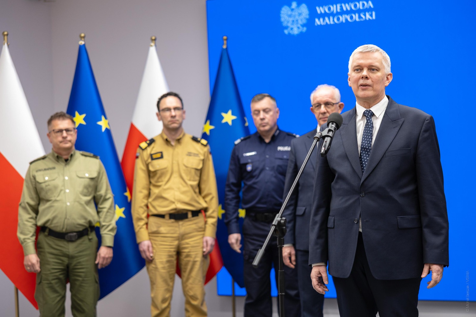 W czwartkowym spotkaniu w Małopolskim Urzędzie Wojewódzkim uczestniczyli m.in.: wojewoda małopolski – Krzysztof Jan Klęczar, komendant główny PSP – nadbryg. Wojciech Kruczek, zastępca komendanta głównego Policji – nadinsp. Tomasz Michułka, zastępca komendanta głównego Straży Granicznej – gen. bryg. SG Tomasz Michalski, szef delegatury ABW w Krakowie oraz komendanci wojewódzcy, a także komendant oddziału służb podległych MSWiA.