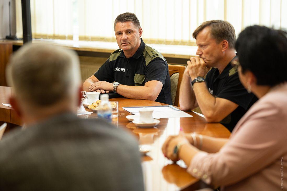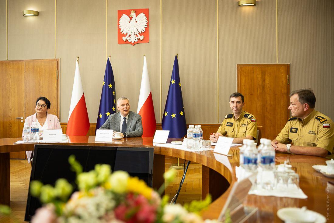 Natomiast w Opolskim Urzędzie Wojewódzkim szef MSWiA Tomasz Siemoniak rozmawiał z szefami służb. W spotkaniu z ministrem uczestniczyli: wojewoda Monika Jurek, komendant główny PSP nadbryg. Mariusz Feltynowski, komendant wojewódzki Policji insp. Magdalena Nguyen-Fudala, komendant wojewódzki PSP st. bryg. Paweł Kielar, komendant Śląskiego Oddziału SG gen. bryg. SG Andrzej Jakubaszek, komendant placówki SG ppłk SG Jerzy Łukasik i dyrektor delegatury ABW ppłk Anika Borowska.