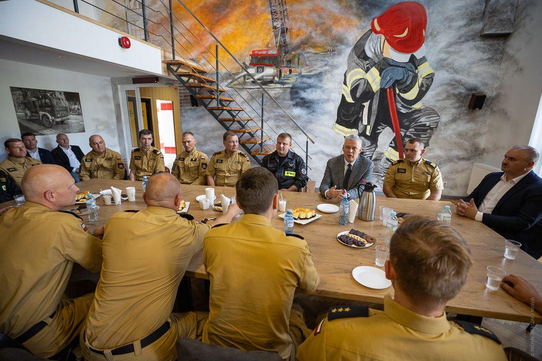 Podczas wizyty w województwie opolskim minister Tomasz Siemoniak odwiedził także Komendę Powiatową PSP w Nysie, gdzie spotkał się ze strażakami.