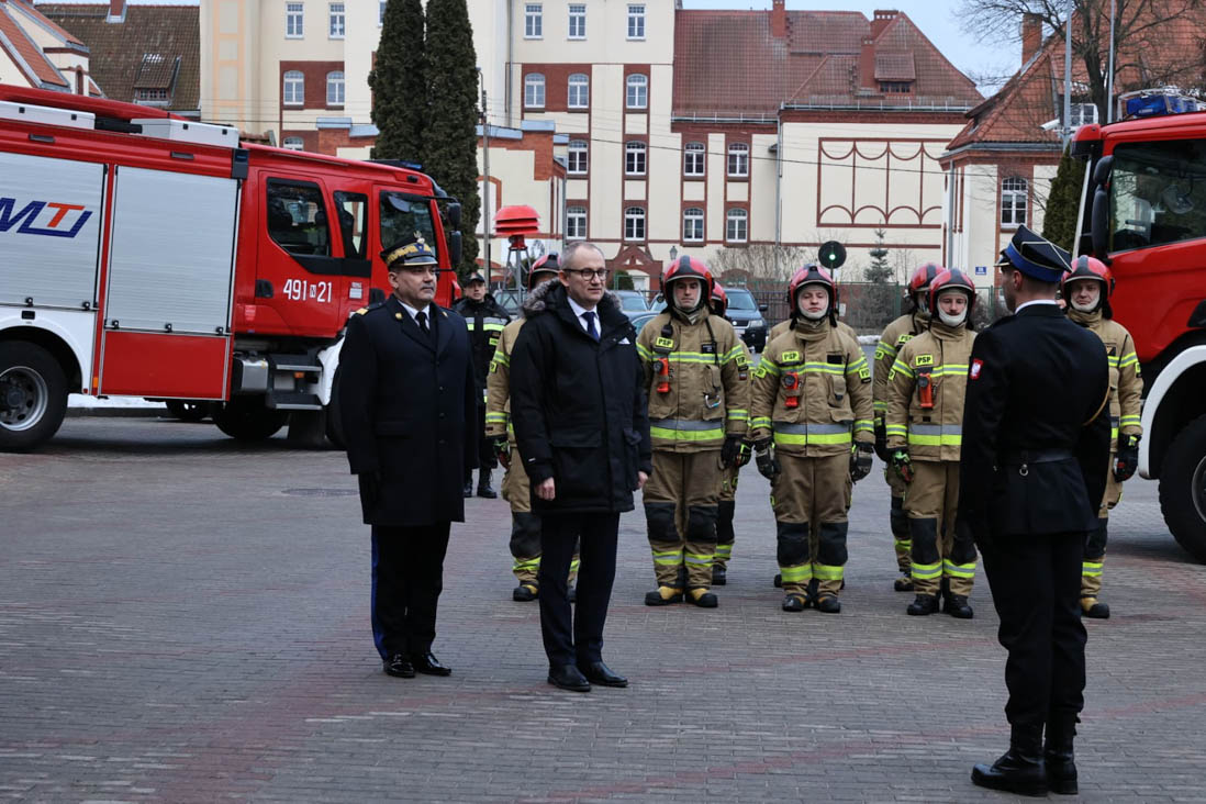 W siedzibie Komendy Powiatowej PSP w Szczytnie wiceszef MSWiA podsumował swoją wizytę w województwie warmińsko-mazurskim. Podczas tego wydarzenia wręczone zostały odznaczenia państwowe, w tym Medale za Długoletnią Służbę oraz Brązowa Odznaka „Zasłużonego dla Ochrony Przeciwpożarowej”.