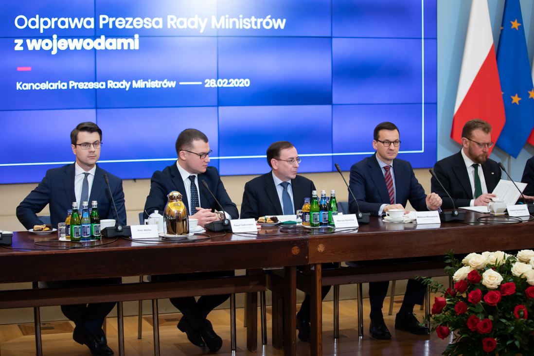 Premier Mateusz Morawiecki wydał wojewodom polecenie wprowadzenia zwiększonej gotowości szpitali na walkę z koronawirusem. Szef rządu uruchomił także kwotę 100 mln zł, o które za pośrednictwem wojewodów będą mogły aplikować szpitale na zakup m.in. dodatkowych środków ochrony. O ustaleniach, które zapadły podczas specjalnej odprawy premiera z wojewodami i przedstawicielami innych zaangażowanych instytucji, poinformowali szef Kancelarii Premiera Michał Dworczyk, minister zdrowia Łukasz Szumowski, a także wiceminister spraw wewnętrznych i administracji Paweł Szefernaker.