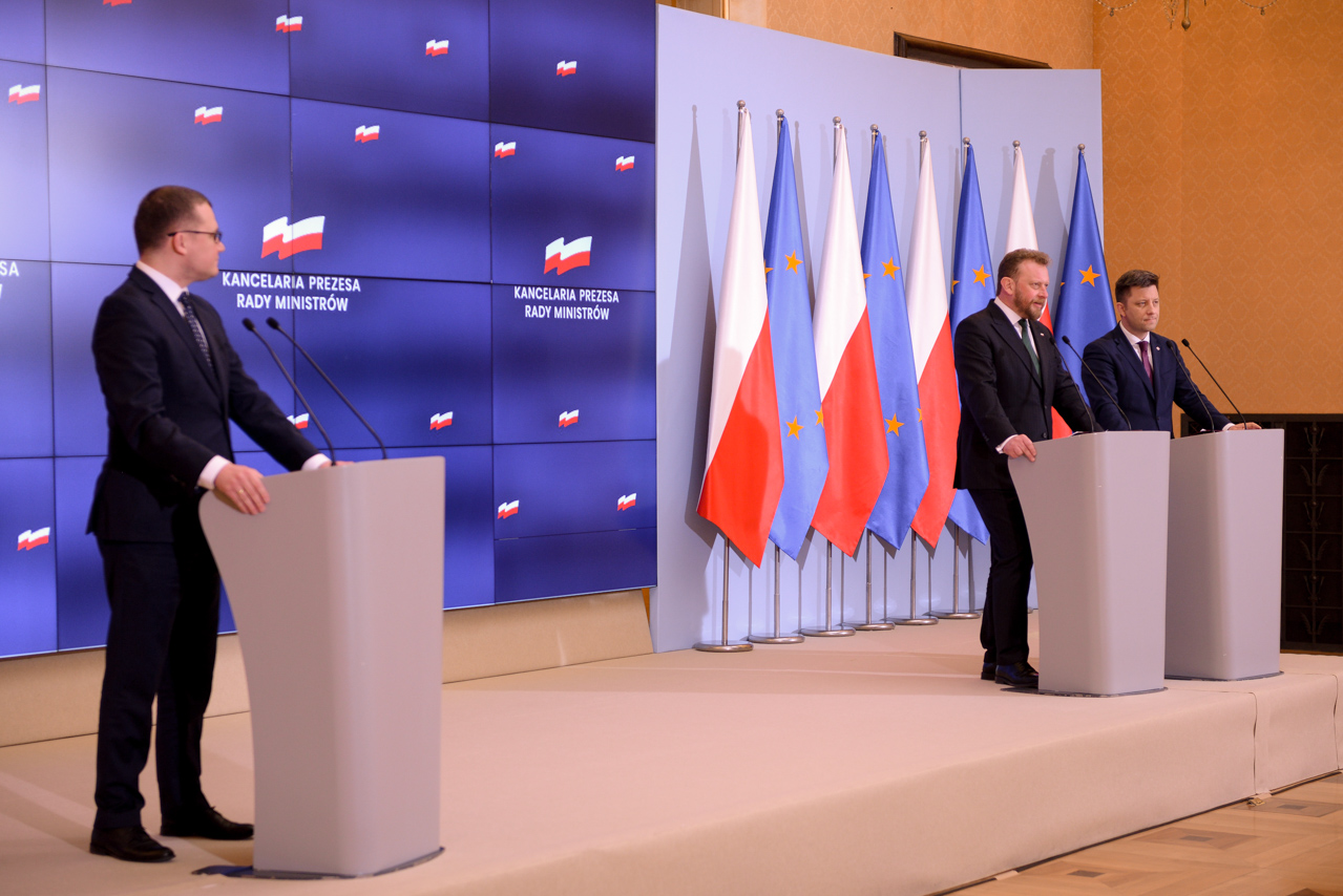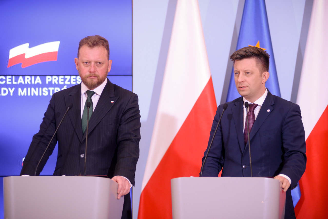 Szef Kancelarii Premiera Michał Dworczyk przedstawił harmonogram działań, które do tej pory podjął rząd w związku z występowaniem koronawirusa. Przypomniał m.in. o ewakuacji polskich obywateli z terytorium Chin i uruchomieniu specjalnej infolinii. Od 25 lutego br. osoby powracające do kraju z zagranicy otrzymują alert RCB dotyczący ryzyka zagrożenia. Podróżującym droga lotniczą jest także mierzona temperatura. Podmiotom leczniczym i lotniskom udostępniono maski i kombinezony z rezerw strategicznych. Jak powiedział szef Kancelarii Premiera, polski rząd sprowadza także do kraju dodatkowe 30 tys. testów, które pozwolą na wykrywanie wirusa u pacjentów.
