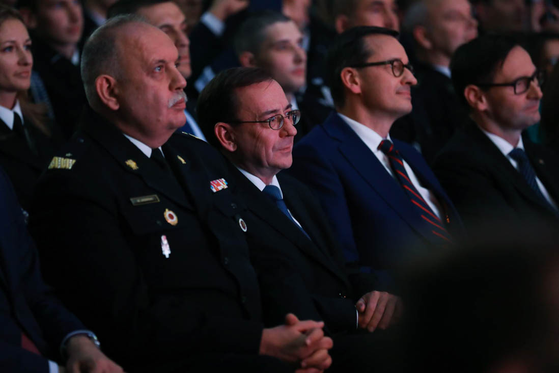 W uroczystości wzięli udział także m.in. premier Mateusz Morawiecki, Daniel Obajtek - prezes PKN Orlen oraz nadbryg. Marek Jasiński, zastępca komendanta głównego Państwowej Straży Pożarnej.