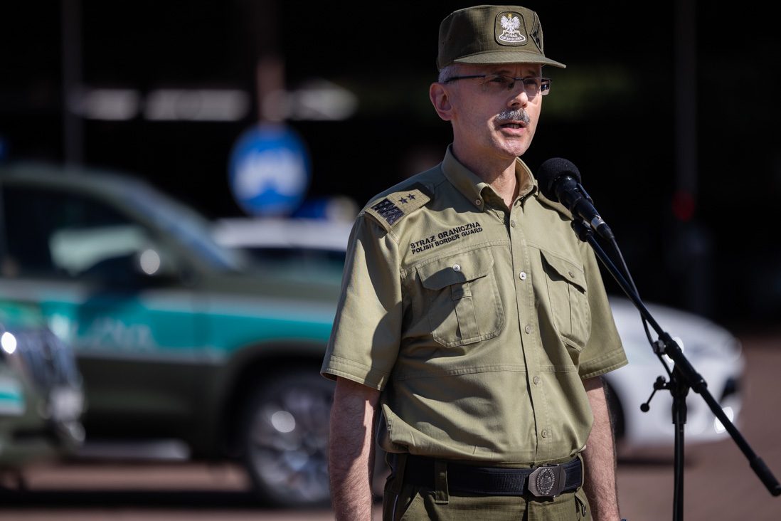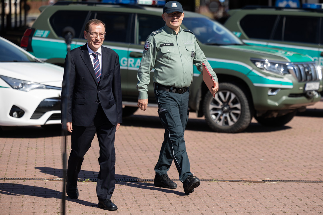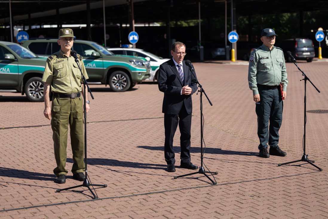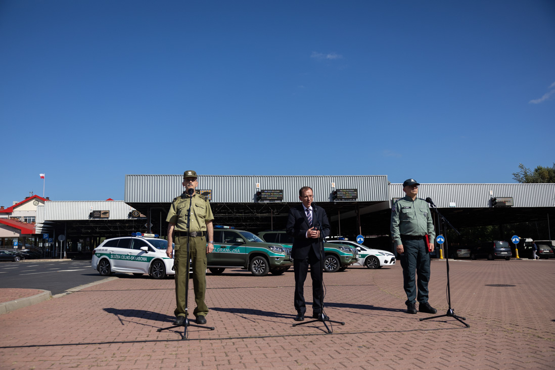 Dziś, 16 września br., na przejściu granicznym Terespol-Brześć, Minister Spraw Wewnętrznych i Administracji Mariusz Kamiński wygłosił oświadczenie dotyczące zakazu przywozu samochodów osobowych zarejestrowanych w Rosji oraz budowy zapory elektronicznej na rzece Bug. W wydarzeniu uczestniczyli również Podsekretarz stanu w Ministerstwie Finansów, Zastępca Szefa Krajowej Administracji Skarbowej insp. Mariusz Gojny oraz Komendant Główny Straży Granicznej gen. dyw. SG Tomasz Praga.