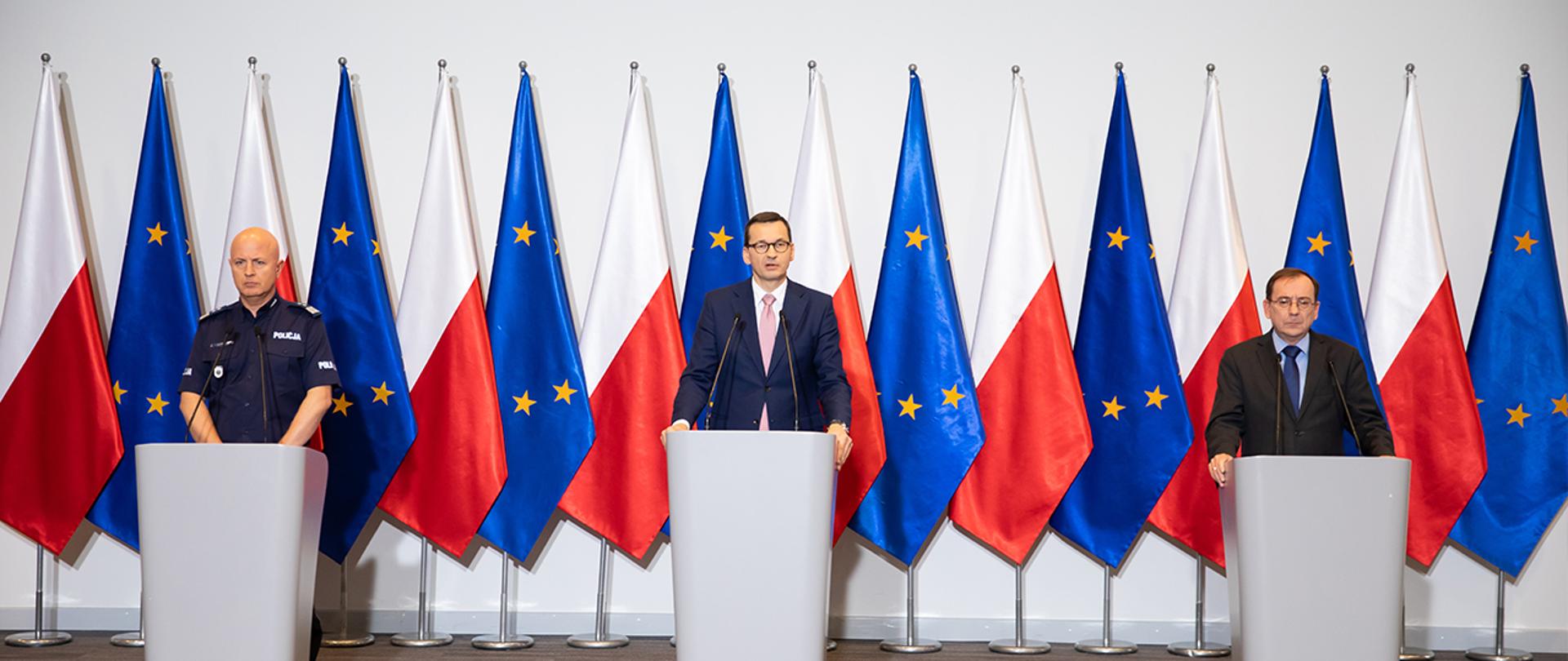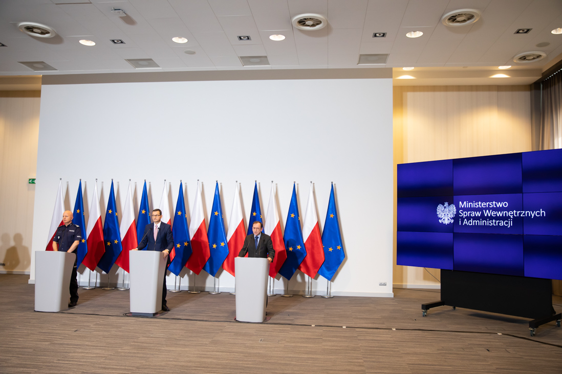 – Widzieliśmy na filmie, jak kilka dni temu doszło do bardzo niedobrego i absolutnie nieakceptowanego zajścia, brutalnego pobicia policjantki i policjanta – powiedział premier Mateusz Morawiecki. – Razem z ministrem Mariuszem Kamińskim podjęliśmy decyzję znaczącego umocnienia bezpieczeństwa policjantów. Oni powinni być pewni, że takie sytuacje nie mogą mieć miejsca – podkreślił szef rządu. – Jesteśmy Wam bardzo wdzięczni i zrobimy wszystko, żeby Wasze bezpieczeństwo jeszcze umocnić – dodał.