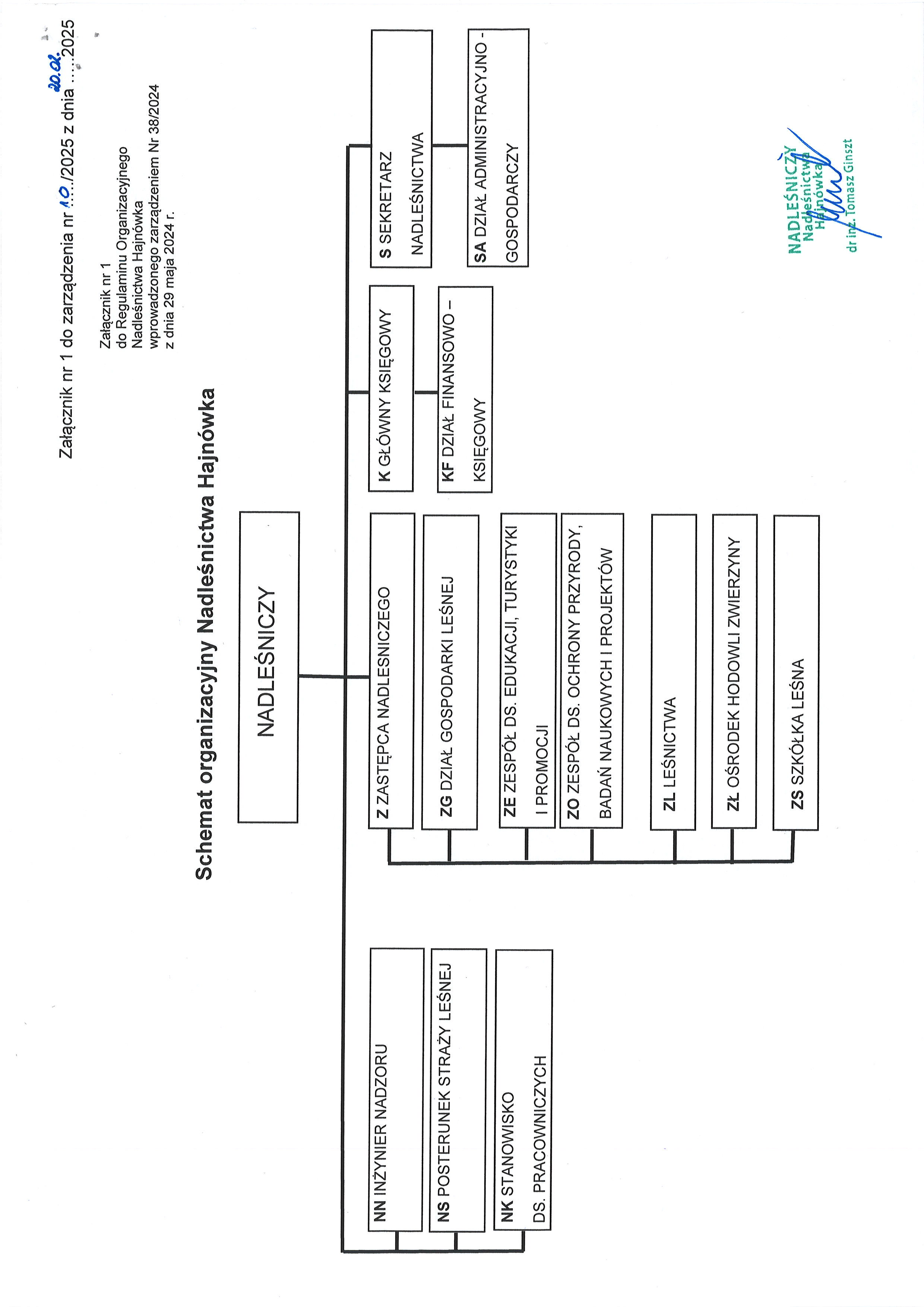 Zarządzenie nr 10/2025 Nadleśniczego Nadleśnictwa Hajnówka w sprawie zmiany regulaminu Organizacyjnego Nadleśnictwa Hajnówka z dn. 20.02.2025 r.