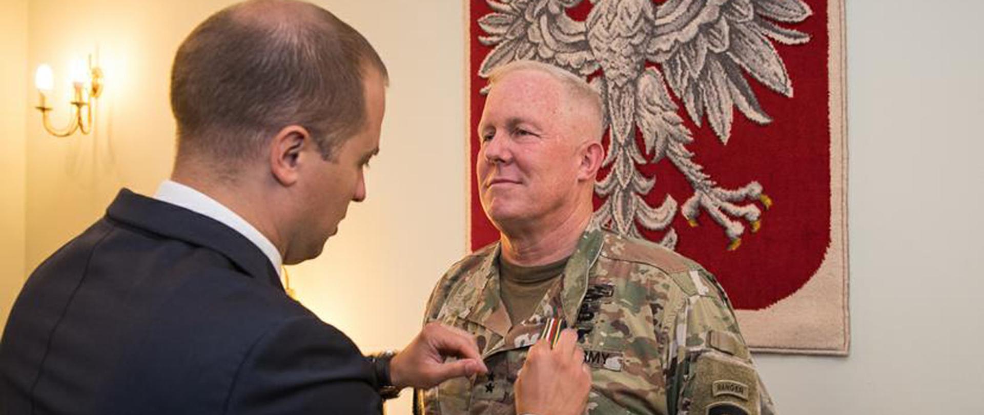 During the meeting, Deputy Minister T. Szatkowski, on behalf of Minister Mariusz Błaszczak, decorated Major General T. McGuire with the Gold Medal of the Polish Army in recognition of his special merits in the field of developing cooperation between the armed forces of Poland and the United States.