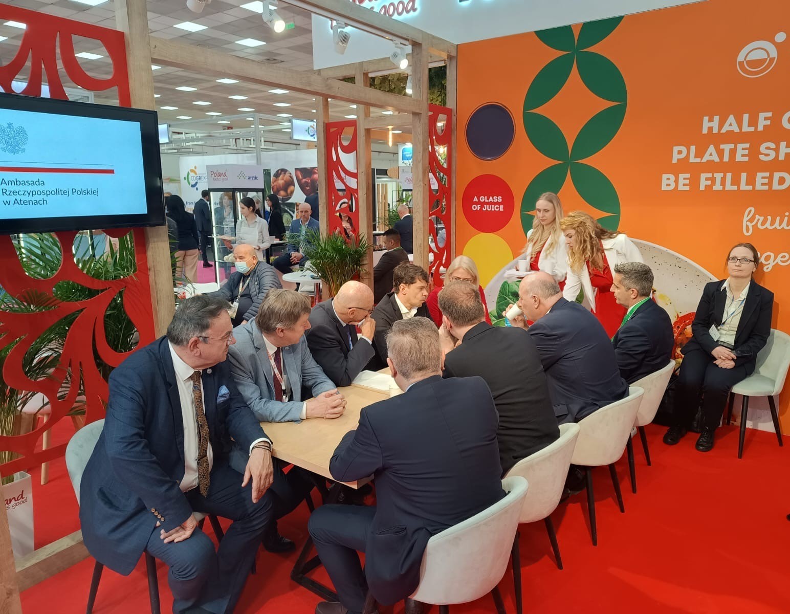The host of the stand, organised by the National Support Center for Agriculture (KOWR), is Jan Szopiński, KOWR Deputy Director General, and the guest of honour at the opening was Konstantinos Tsiaras, the current Minister of Agricultural Development and Food of the Hellenic Republic. Representatives of the Embassy of the Republic of Poland in Athens, the Greek-Polish Chamber of Industry and Investment based in Thessaloniki, and Polish entrepreneurs from the fruit and vegetable industry were also present at the opening.
