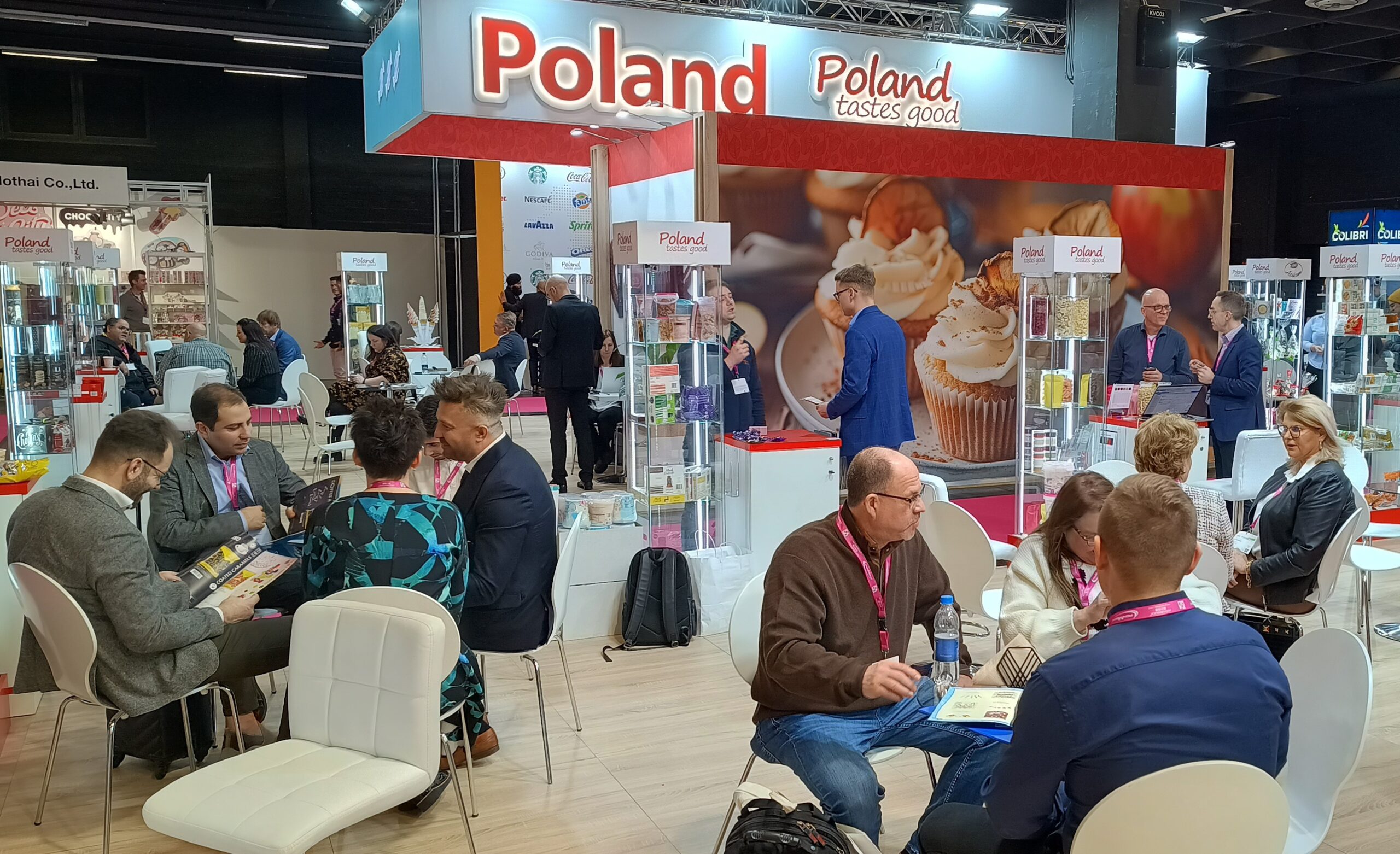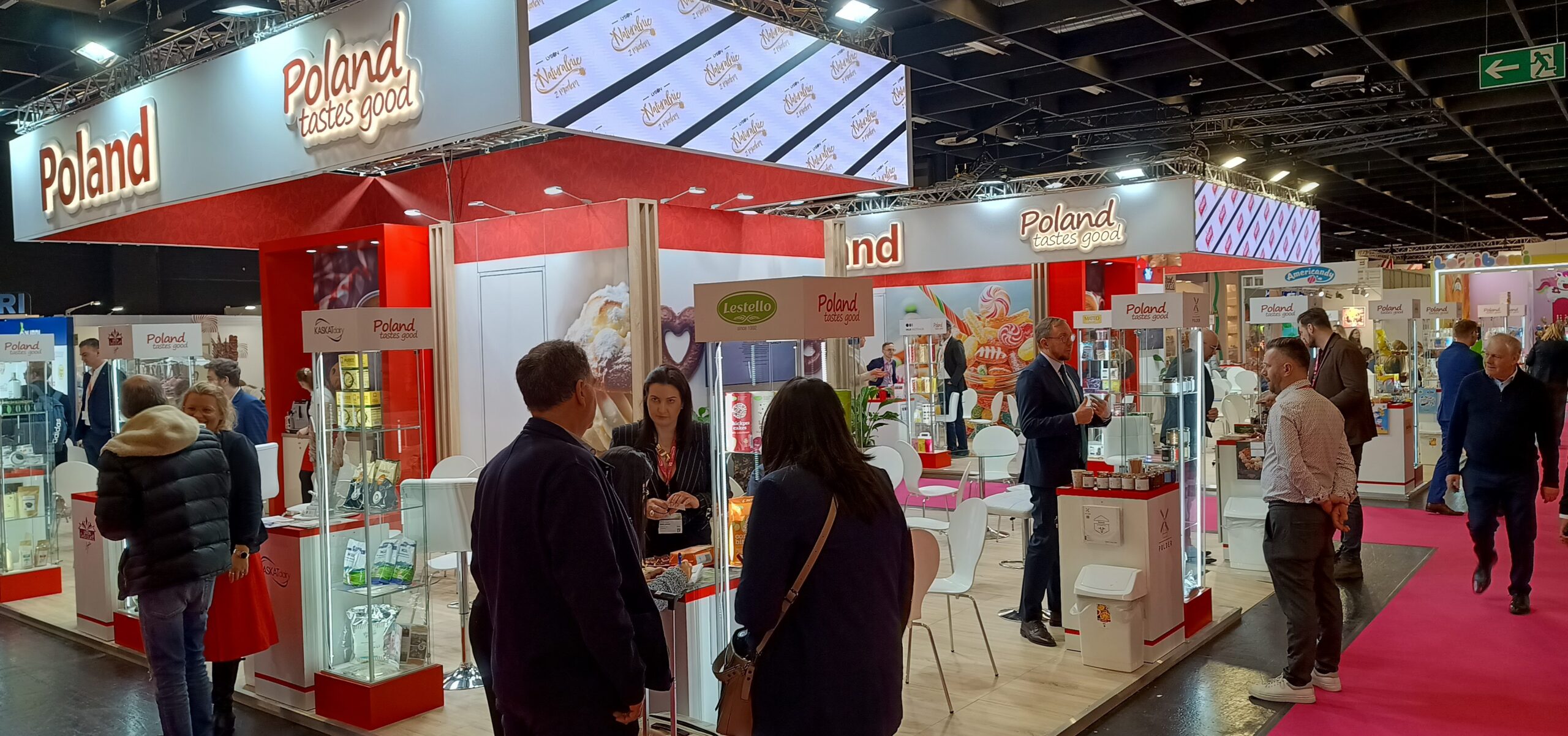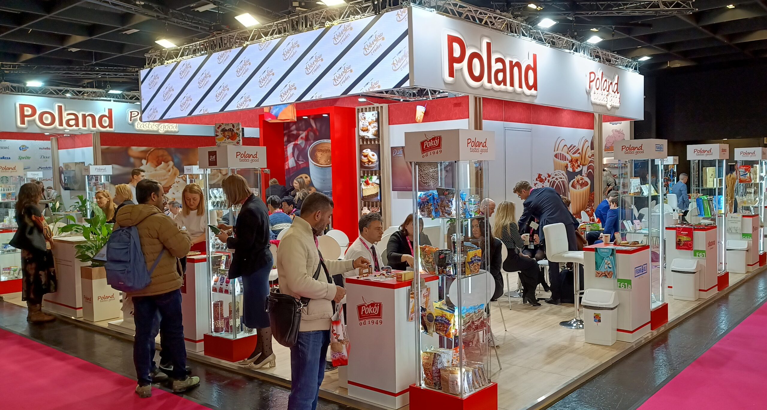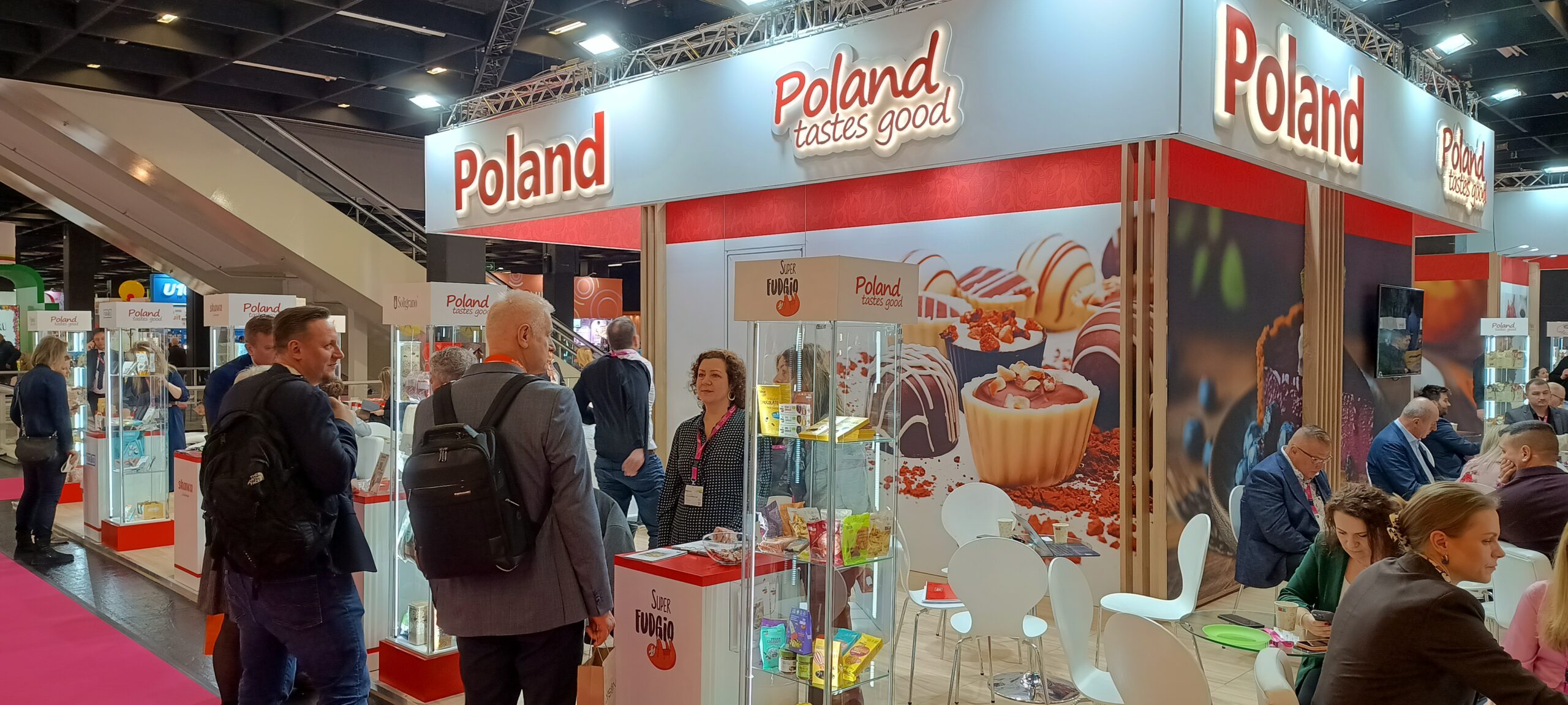 This year, the national stand organised by KOWR under the “Poland tastes good” slogan gathered 28 entrepreneurs presenting a wide offer of confectionery and snacks. The Polish companies promote among others: cookies, gingerbread products, fudges, butterscotches, lollipops, chocolate jellies, chocolates, pralines, chocolate candies, chocolate dipped fruits and nuts, rice wafers, sticks, crisps, chips, lyophilised fruits, dulce de leche, cereals and other breakfast products, flavoured syrups, ice cream powders, puddings, jellies, gluten-free cakes and bread, honey sweets and snacks as well as vegan confectionery products.