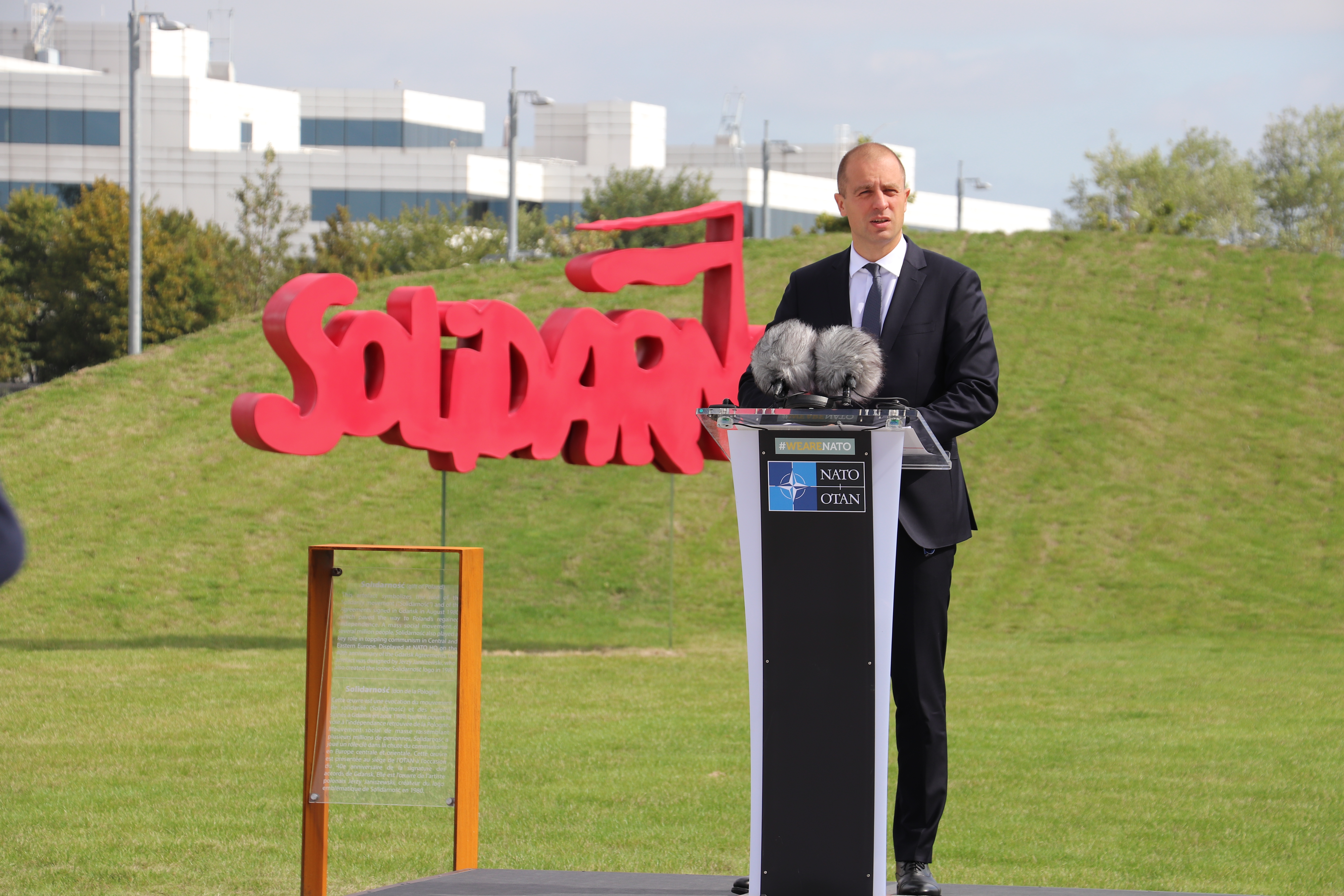 Nie wyobrażam sobie lepszego miejsca dla czerwonego logo Solidarności, niż na terenie Kwatery Głównej NATO. To tutaj 30 sojuszników codziennie demonstruje, co oznacza solidarność i jedność. Artykuł 5 Traktatu Północnoatlantyckiego jest najlepszym symbolem naszej solidarność.