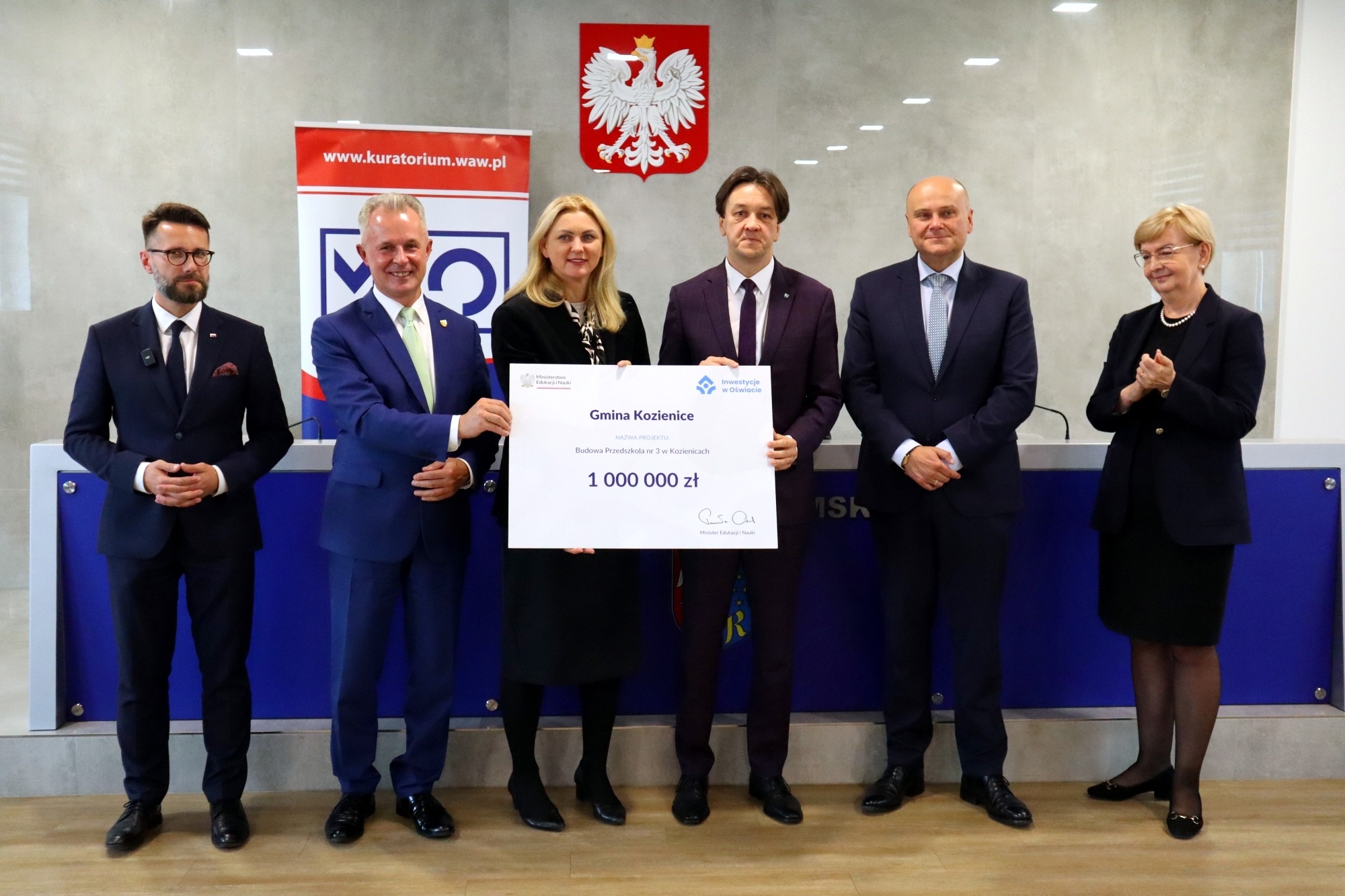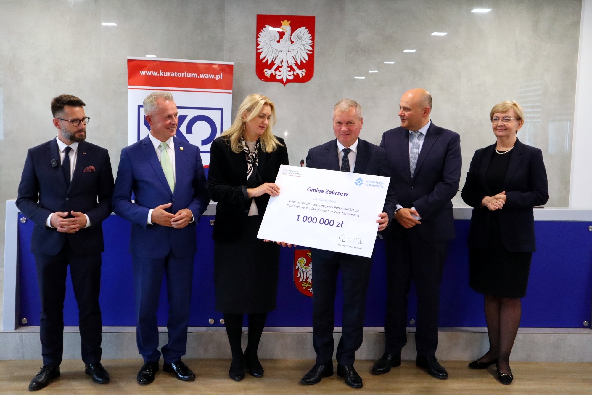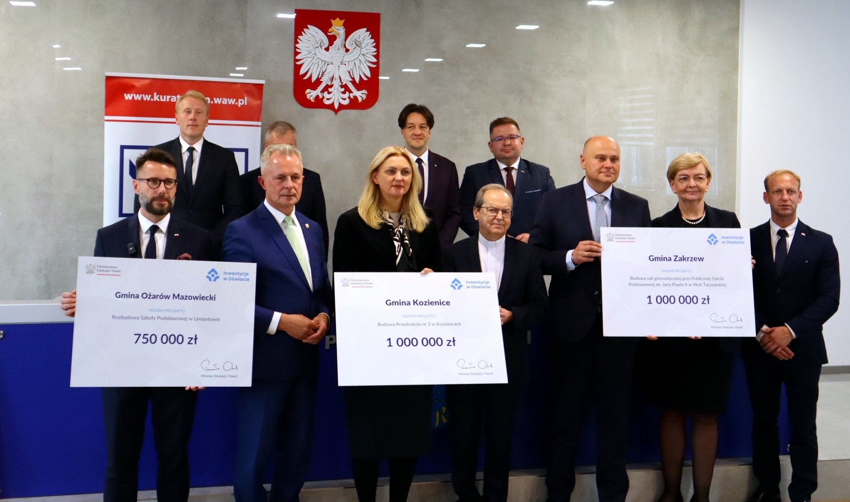 Dyrektor Generalny w MEiN Sławomir Adamiec wręczył symboliczne czeki beneficjentom programu „Inwestycje w oświacie” z województwa mazowieckiego. W sumie 31 podmiotów uzyskało wsparcie na kwotę ponad 27,5 mln zł.