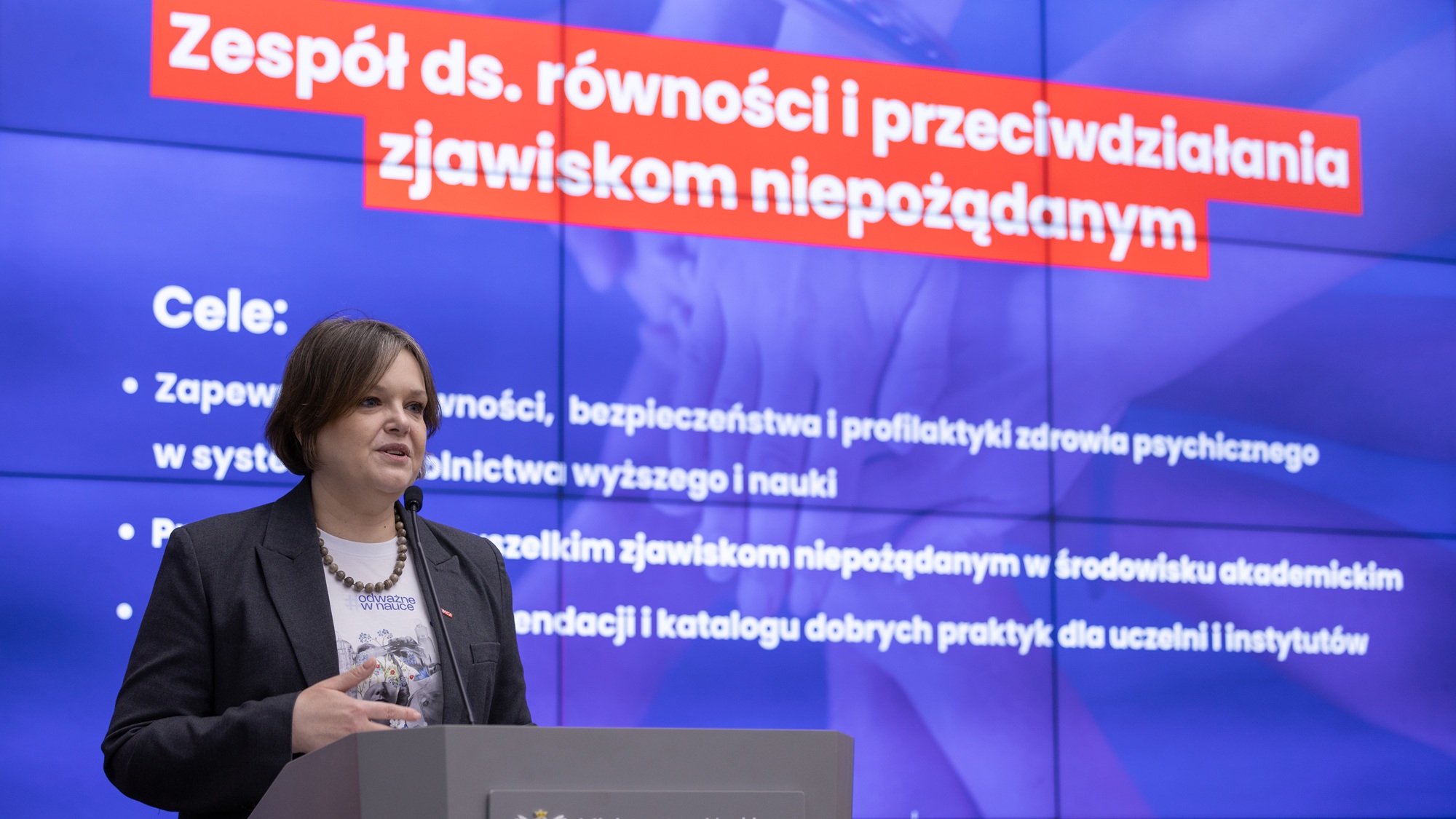 – Komunikując w styczniu tego roku kwestie pakietu antydyskryminacyjnego obiecałam, że nie później niż w marcu powołany zostanie nowy zespół ekspercki, który zajmie się w modelu skonsolidowanym kwestiami optymalizacji projakościowej systemu szkolnictwa wyższego i nauki pod kątem aktywności na rzecz zapewnienia równości oraz przeciwdziałania zjawiskom niepożądanym w środowisku akademickim – podkreśliła w trakcie konferencji inaugurującej prace Zespołu wiceministra Karolina Zioło-Pużuk. – Nowy Zespół stanowi rzeczywisty dowód, że da się utworzyć gremium, w którym relacje płci są następujące: co najmniej 30 proc. kobiet lub co najmniej 30 proc. mężczyzn – dodała wiceministra, która będzie kierować pracami Zespołu ds. równości i przeciwdziałania zjawiskom niepożądanym w środowisku akademickim.