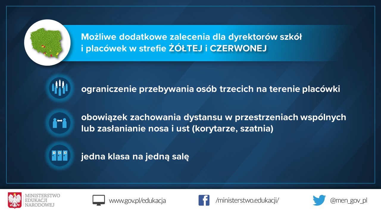 Dodatkowe zalecenia dla dyrektorów publicznych i niepublicznych szkół i placówek, które znajdują się w strefie czerwonej/żółtej.