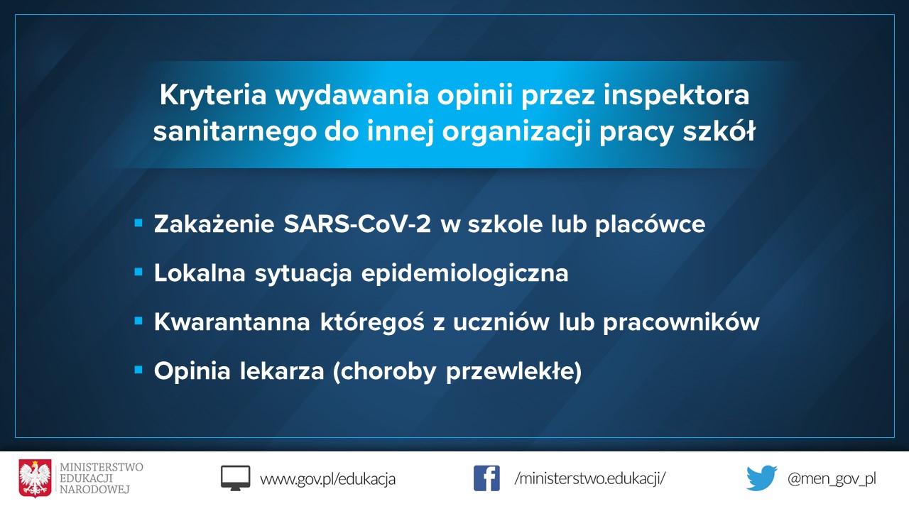 MEN na bieżąco monitoruje sytuację w szkołach oraz podejmujemy do nich adekwatne decyzje. Priorytetem jest przede wszystkim bezpieczeństwo uczniów i rodziców.