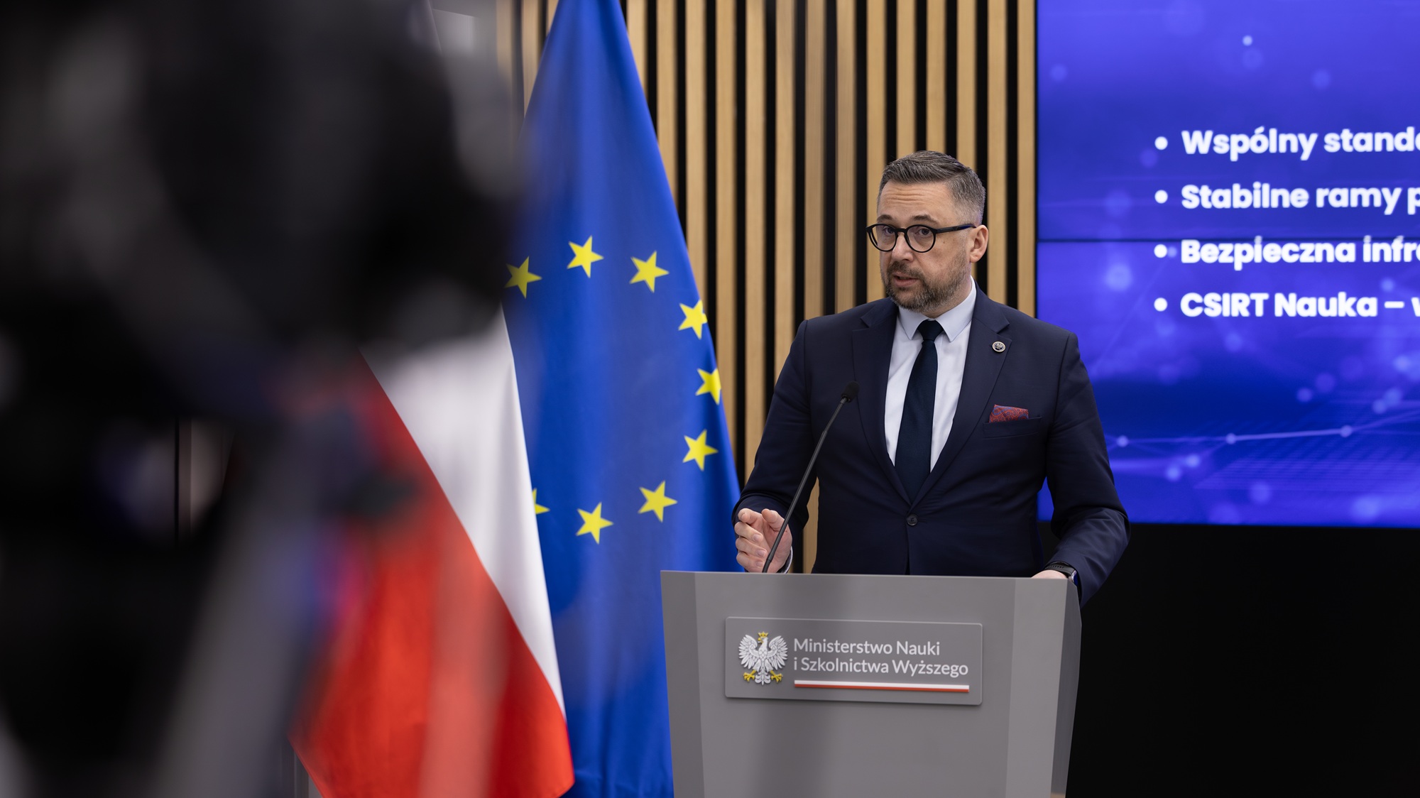 Nowelizacja ustawy o Krajowym Systemie Cyberbezpieczeństwa uporządkuje zasady ochrony systemów informatycznych w uczelniach i instytutach naukowych. W nowo przyjętych regulacjach po raz pierwszy przyjęto podejście oparte na zasadzie adekwatności i proporcjonalności. O rozwiązaniach wypracowanych wspólnie przez administrację publiczną i środowisko akademickie mówili na zorganizowanej w siedzibie MNiSW konferencji prasowej minister nauki i szkolnictwa wyższego Marcin Kulasek i przedstawiciele Konferencji Rektorów Akademickich Szkół Polskich.