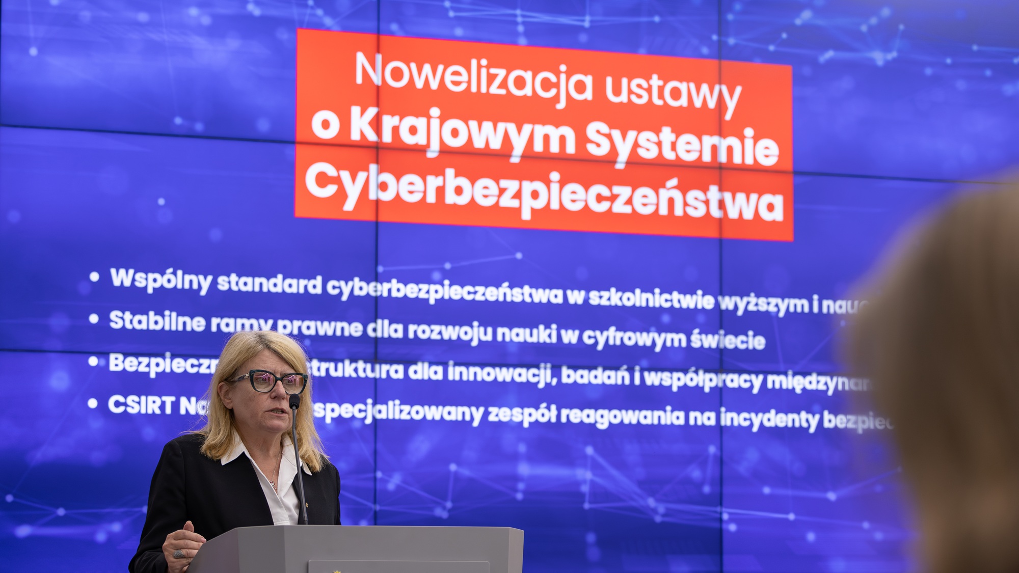 O warunku adekwatności przyjmowanych rozwiązań mówiła przewodnicząca KRASP. – Konferencja Rektorów Akademickich Szkół Polskich od początku włączyła się do działań zmierzających do nowelizacji ustawy i na bieżąco wnosiła swoje poprawki i postulaty. Efektem jest ustawa, która z jednej strony chroni uczelnie, a z drugiej strony bierze pod uwagę ich specyfikę. Najważniejsze zasady cyberbezpieczeństwa będą obejmowały te podmioty, które prowadzą realną działalność badawczą i przekuwają ją w określone rozwiązania. To rozwiązania stworzone po to, by chronić przede wszystkim to, co w nauce polskiej innowacyjne i umożliwić uczelniom swobodne działanie – podkreślała prof. Bogumiła Kaniewska.