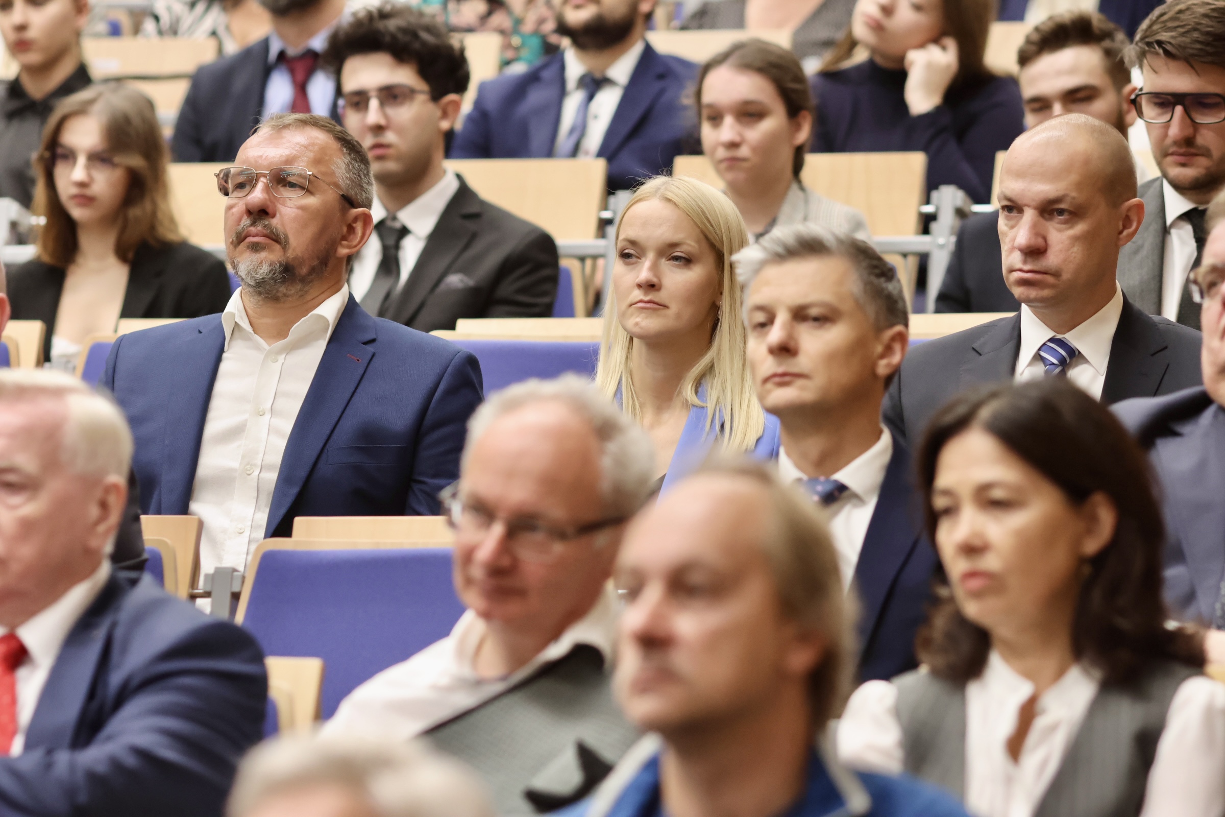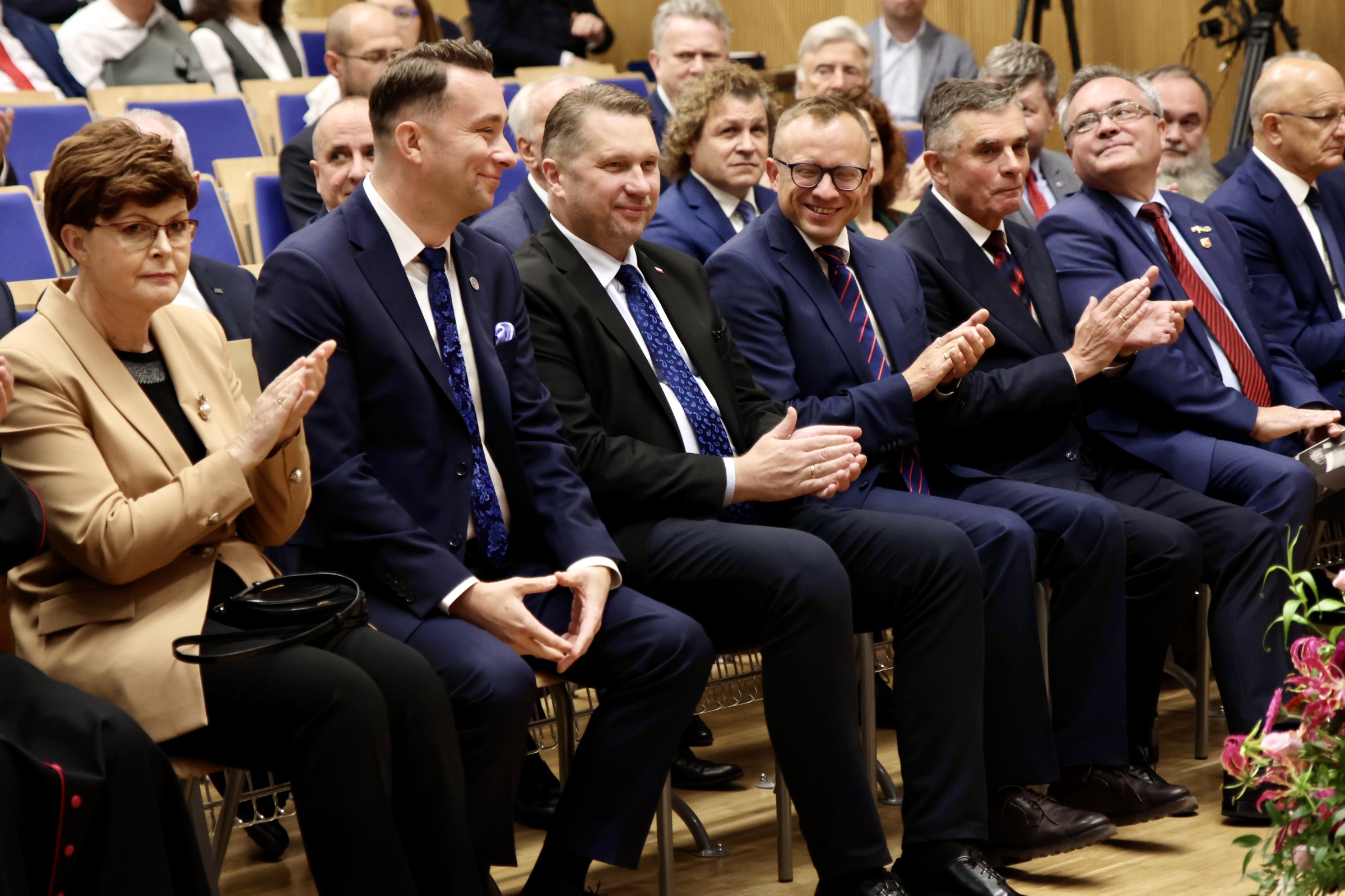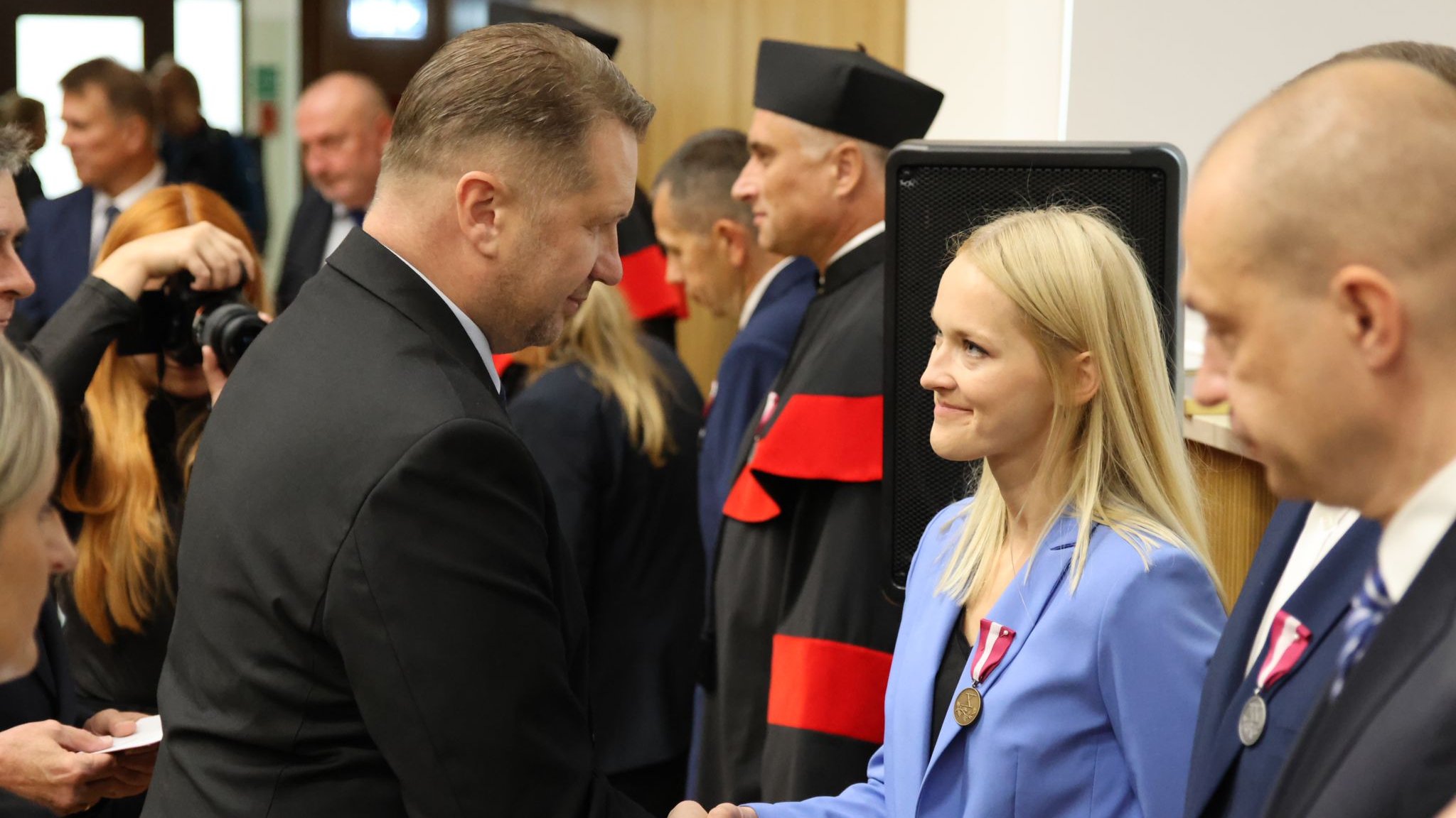 Szef MEiN pogratulował i podziękował odznaczonym za zaangażowanie w rozwój uczelni. – To jest dowód na państwa wielki wkład w ten 70-letni staż Politechniki Lubelskiej i sukcesy uczelni. Gratuluję tych sukcesów. Chcę powiedzieć, że rzeczywiście współpraca ze wszystkimi lubelskimi uczelniami – ale w sposób szczególny z Politechniką Lubelską – jest doskonała. I za te współpracę dziękuję. Dziękuję również za to, że tych swoich imponujących osiągnięć nie zatrzymujecie tylko w tych murach politechniki. Wy naprawdę się nimi dzielicie. I dzielicie się z innymi uczelniami lubelskimi. Dowody są dwa. Lubelska Unia Cyfrowa to projekt, który powstał dzięki wam. Jego liderem jest Uniwersytet Medyczny, ale bez waszego wkładu, wiedzy, doświadczenia i sprawności organizacyjnej Lubelska Unia Cyfrowa by nie funkcjonowała. Z chęcią będziemy ten projekt dalej wspierać. Drugi dowód, to znakomity projekt Via Carpatia, który łączy trzy nasze politechniki i rzeczywiście łączy studentów, naukowców i tę współpracę uczelni podnosi na wysoki poziom.