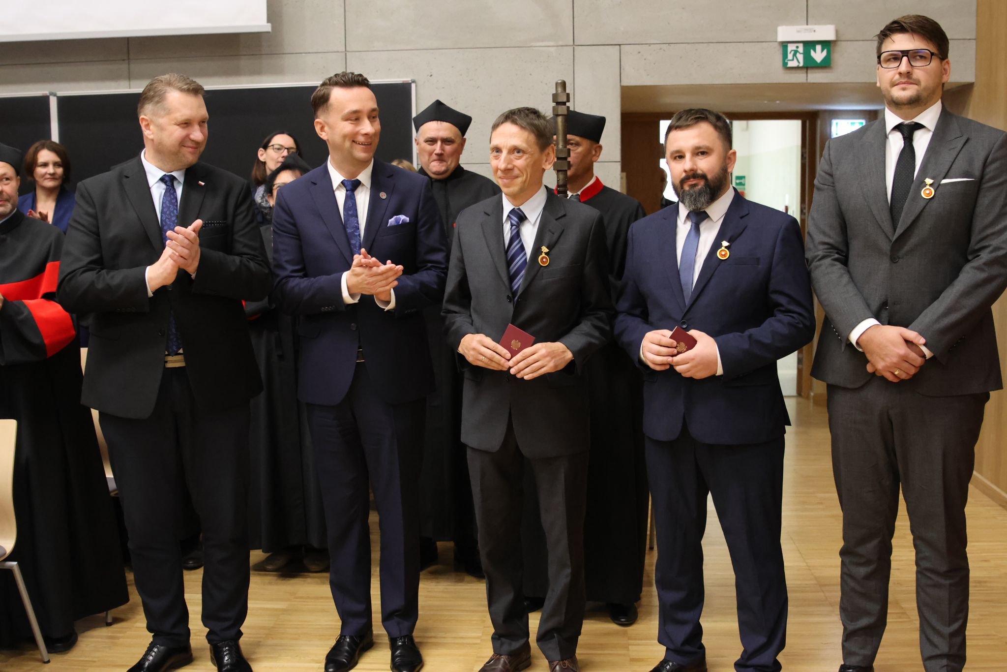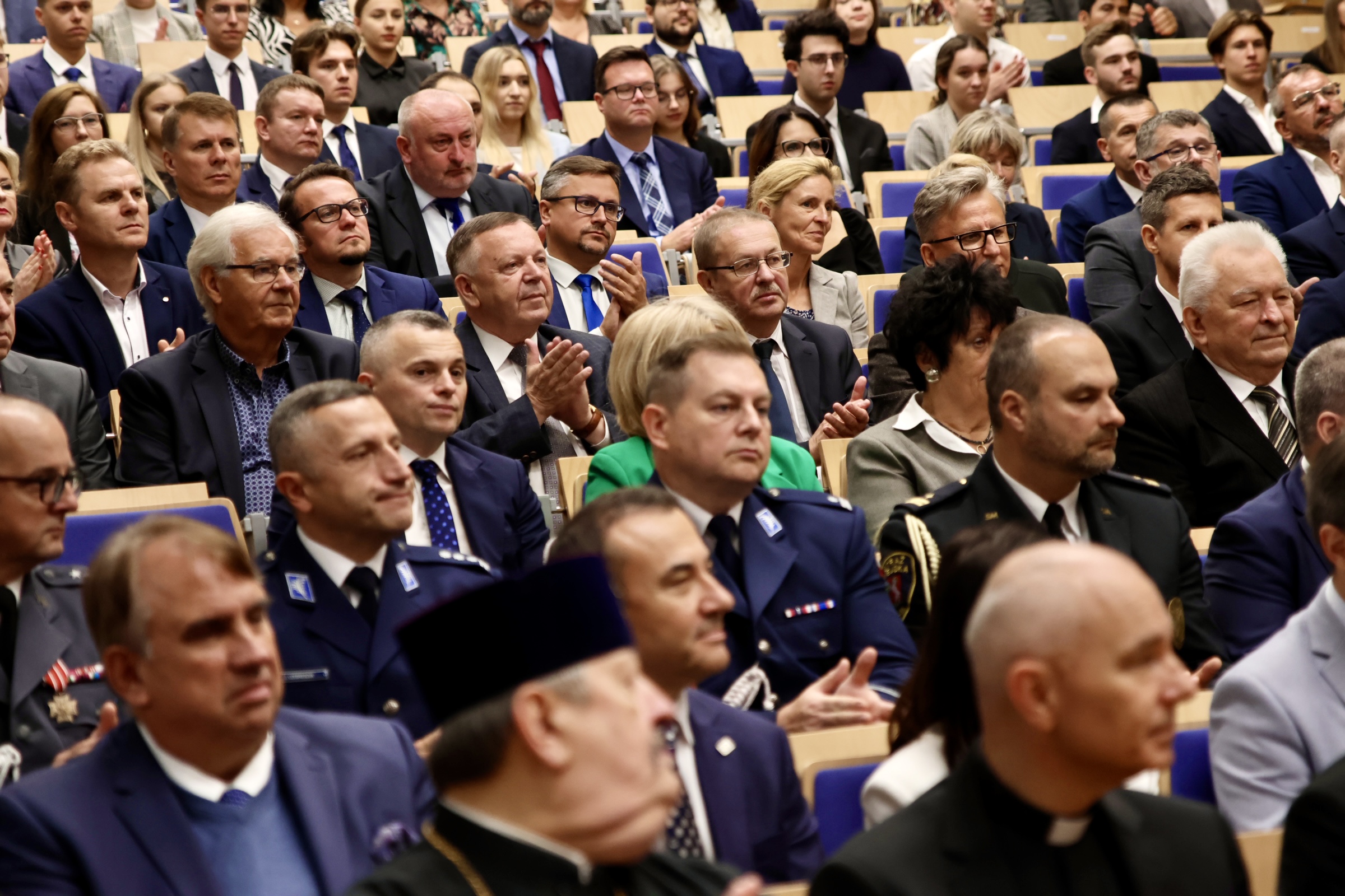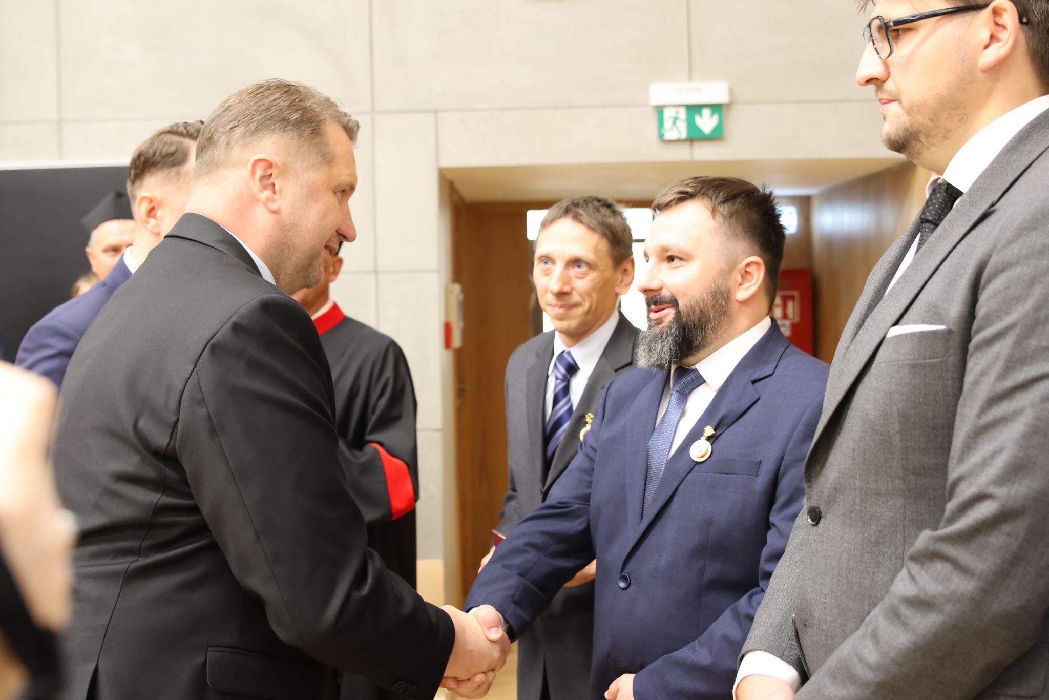 Szef MEiN pogratulował i podziękował odznaczonym za zaangażowanie w rozwój uczelni. – To jest dowód na państwa wielki wkład w ten 70-letni staż Politechniki Lubelskiej i sukcesy uczelni. Gratuluję tych sukcesów. Chcę powiedzieć, że rzeczywiście współpraca ze wszystkimi lubelskimi uczelniami – ale w sposób szczególny z Politechniką Lubelską – jest doskonała. I za te współpracę dziękuję. Dziękuję również za to, że tych swoich imponujących osiągnięć nie zatrzymujecie tylko w tych murach politechniki. Wy naprawdę się nimi dzielicie. I dzielicie się z innymi uczelniami lubelskimi. Dowody są dwa. Lubelska Unia Cyfrowa to projekt, który powstał dzięki wam. Jego liderem jest Uniwersytet Medyczny, ale bez waszego wkładu, wiedzy, doświadczenia i sprawności organizacyjnej Lubelska Unia Cyfrowa by nie funkcjonowała. Z chęcią będziemy ten projekt dalej wspierać. Drugi dowód, to znakomity projekt Via Carpatia, który łączy trzy nasze politechniki i rzeczywiście łączy studentów, naukowców i tę współpracę uczelni podnosi na wysoki poziom.