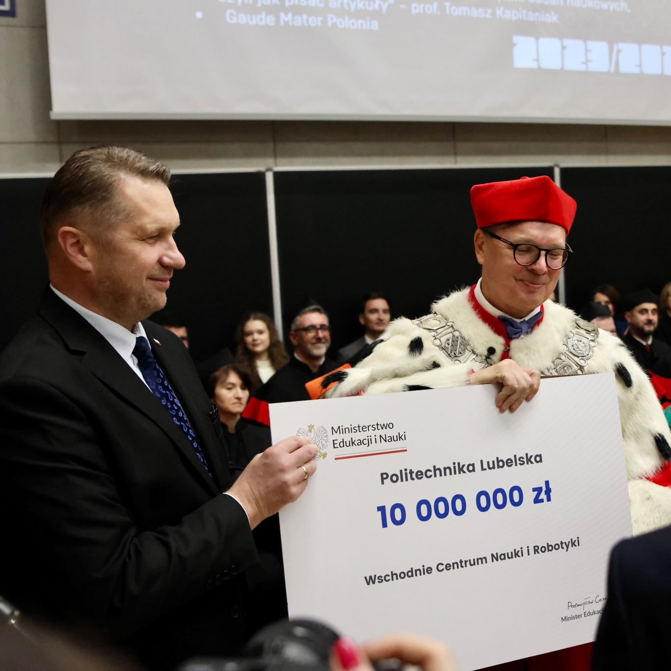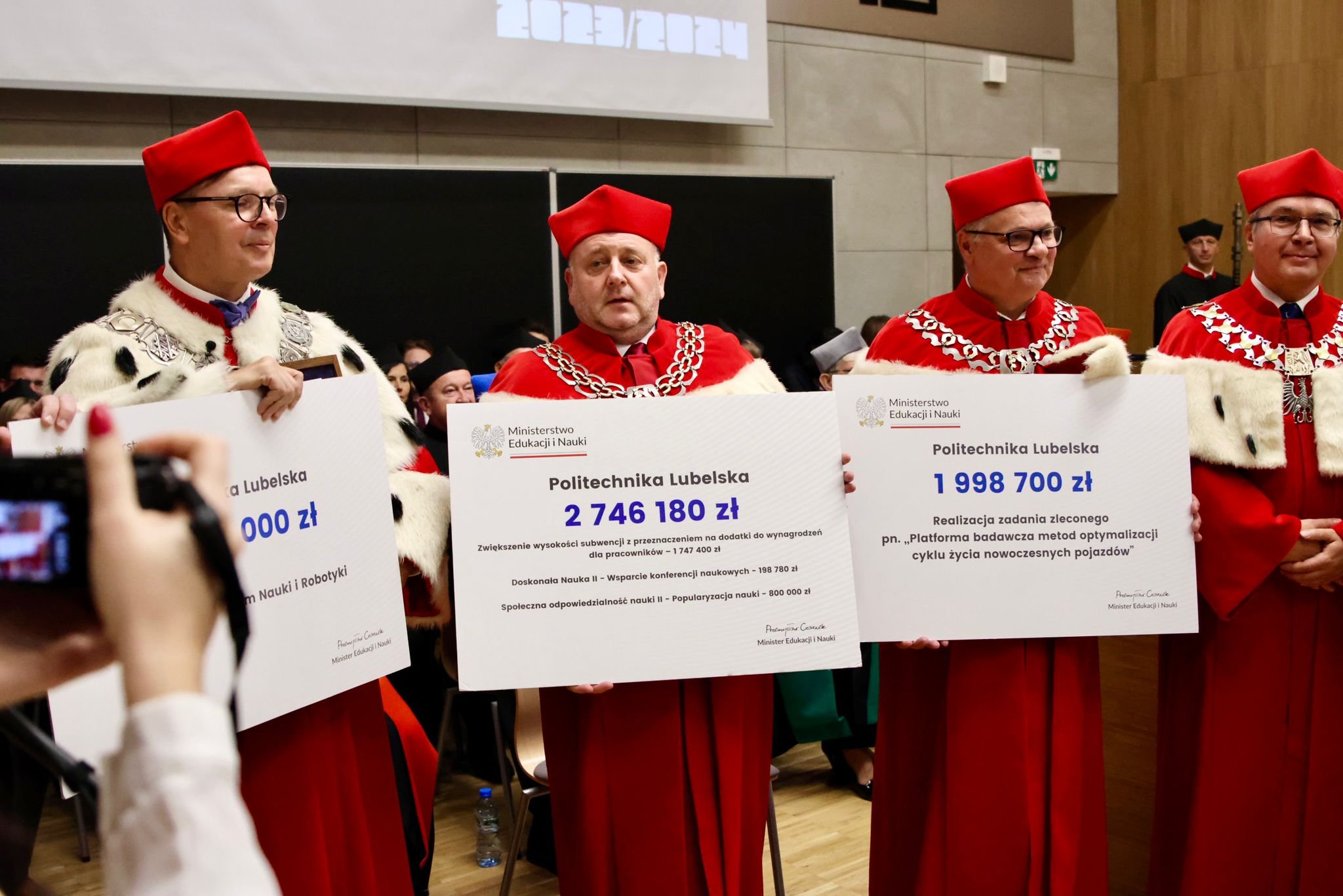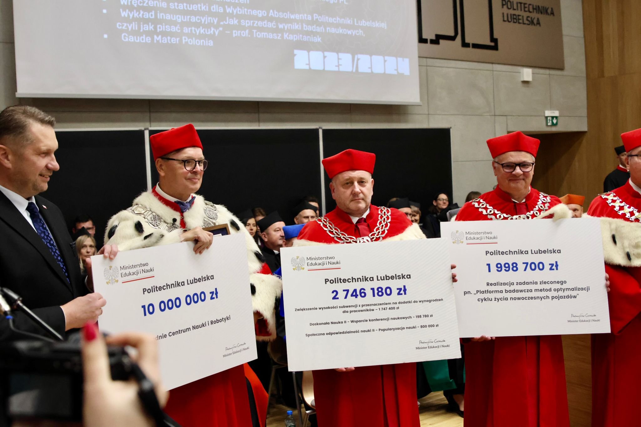 Szef MEiN przekazał uczelni symboliczne czeki, które umożliwią jeszcze pełniejszy rozwój lubelskiej politechniki:
