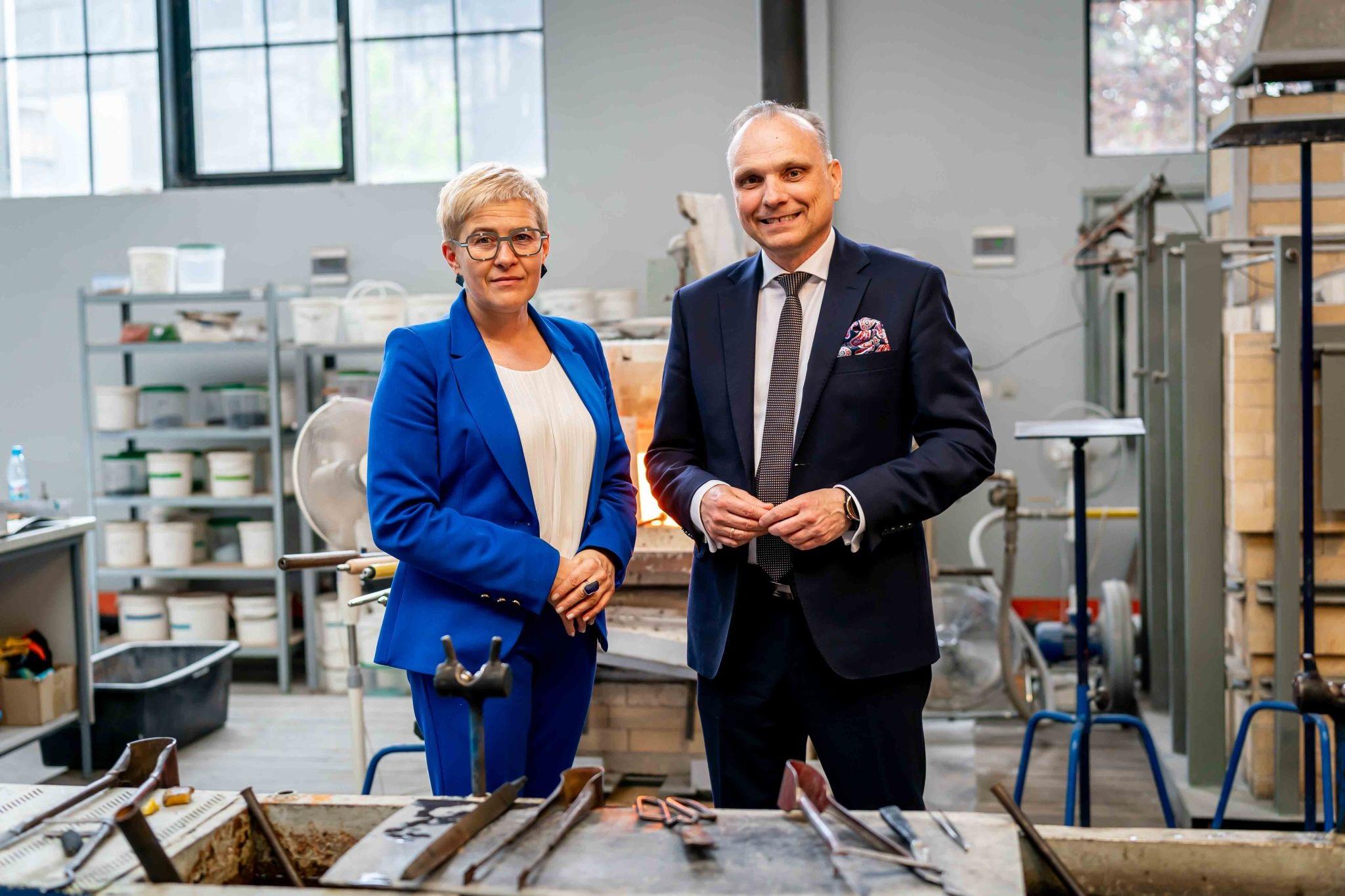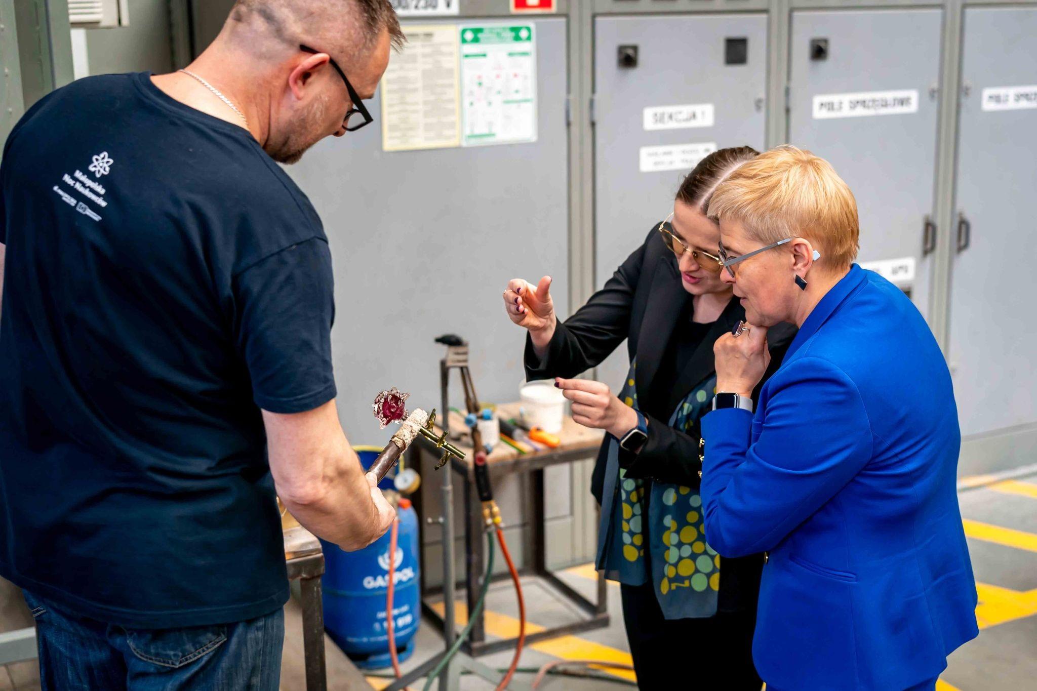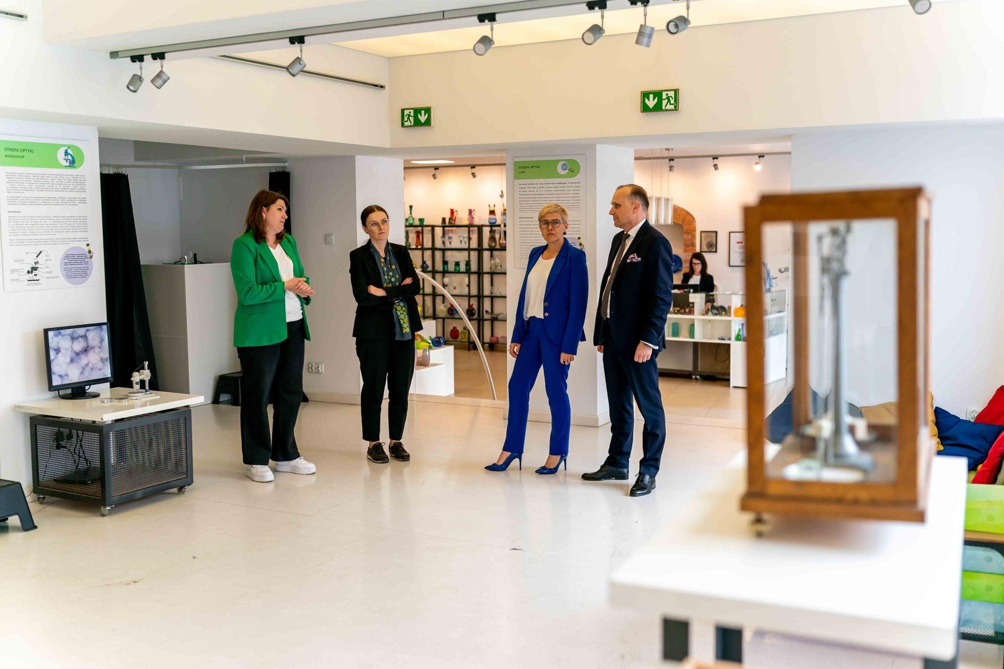 Wiceminister Maria Mrówczyńska spotkała się z pracownikami Krakowskiej Huty Szkła. Zakład działa w ramach Sieci Badawczej Łukasiewicz – Instytutu Ceramiki i Materiałów Budowlanych i jest przede wszystkim centrum edukacyjno-kulturalnym, które przybliża mieszkańcom Krakowa i turystom fascynujący świat szklanej materii.