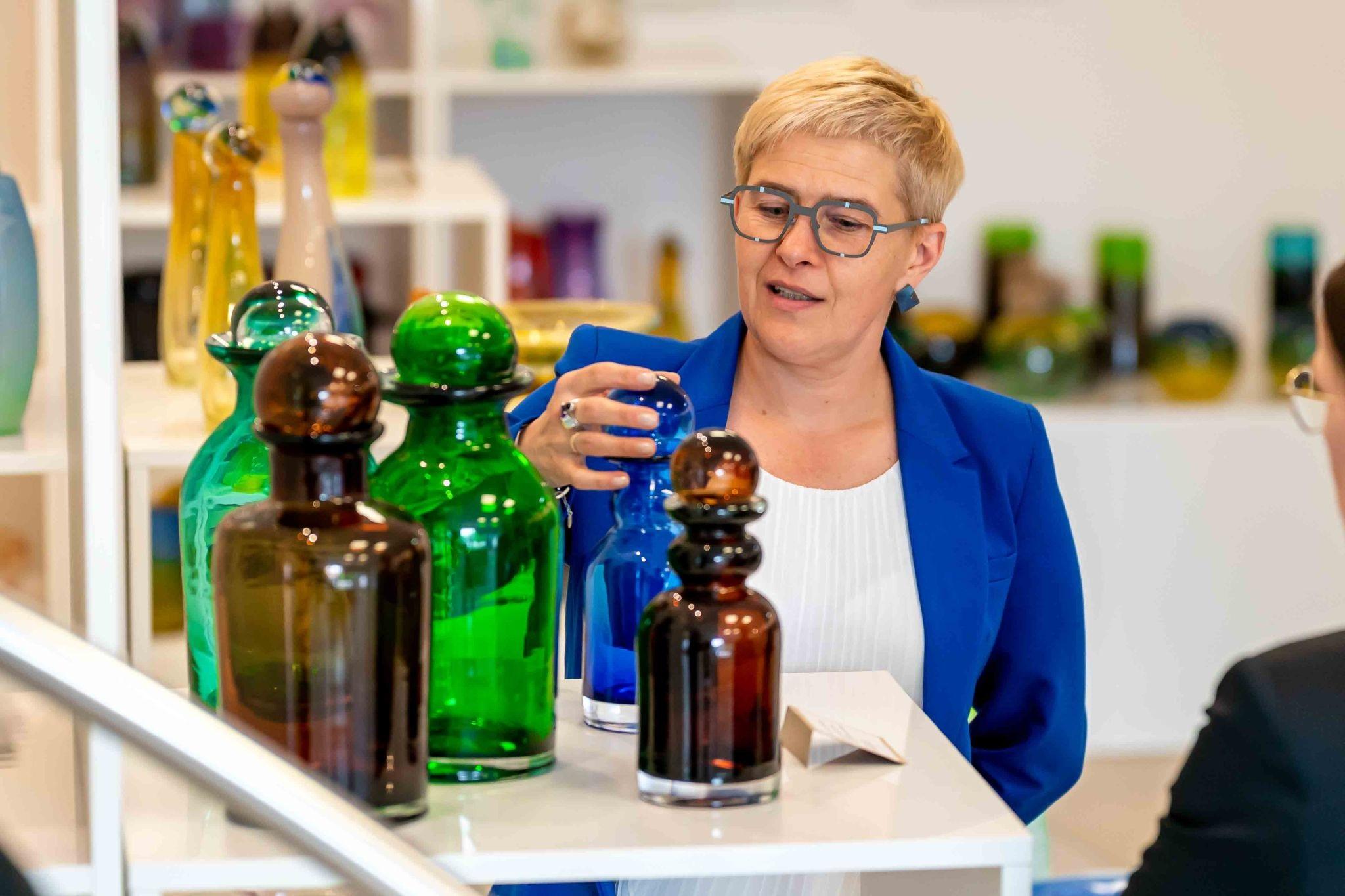 Wiceminister Maria Mrówczyńska podczas wizyty w Krakowskiej Hucie Szkła