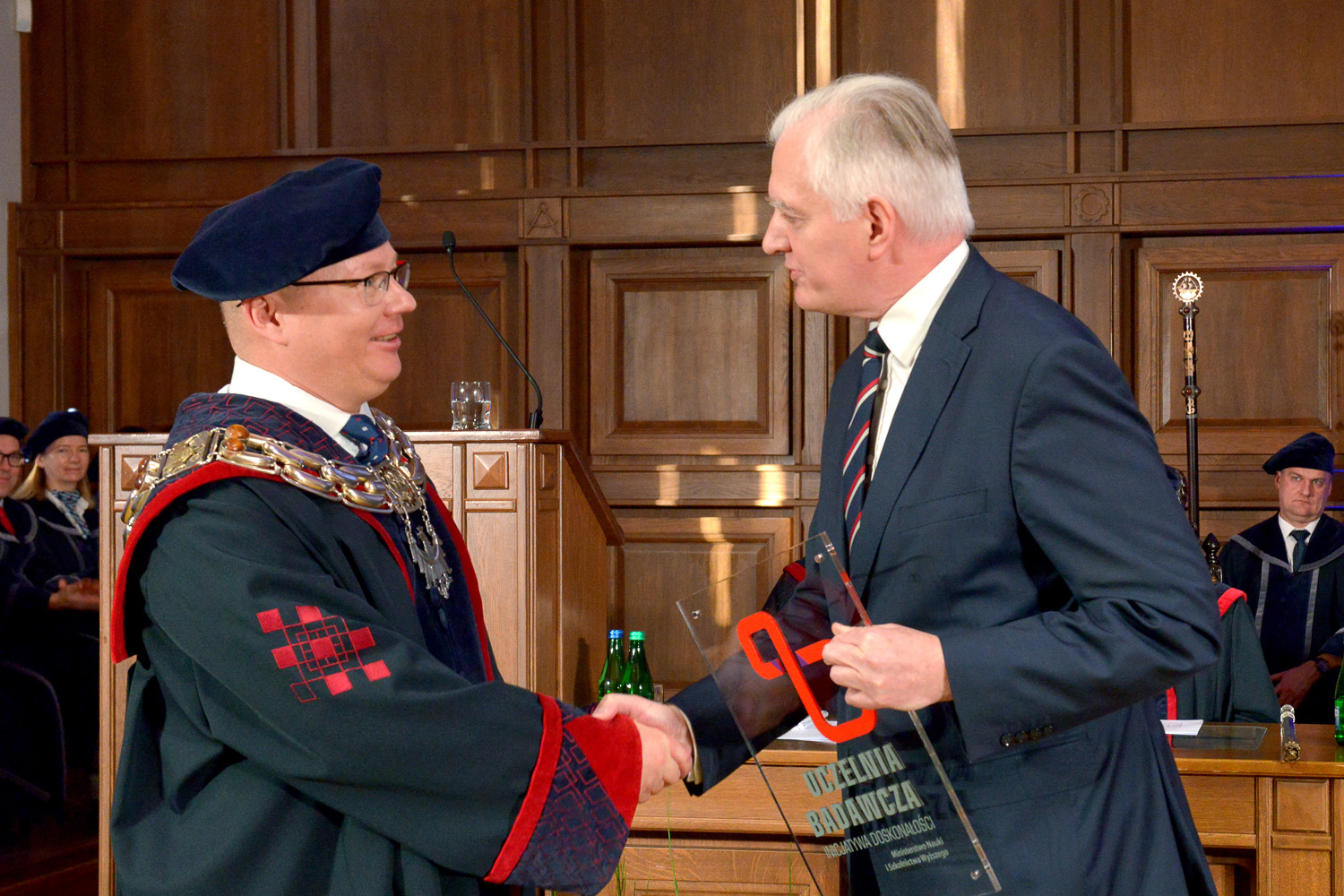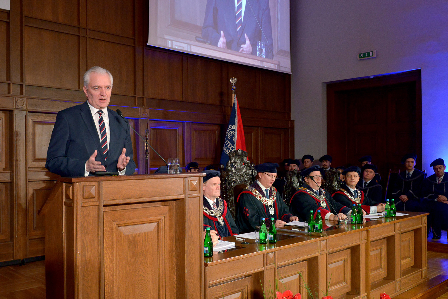 – Wszyscy chyba na tej sali czujemy, że osobą, która położyła podwaliny pod ten sukces, jest zmarły w kwietniu prof. Jacek Namieśnik – zaznaczył wicepremier J. Gowin. – Jako rektor Politechniki Gdańskiej przyjął zdecydowanie proreformatorski kurs, dzięki czemu w bardzo krótkim czasie Państwa Alma Mater zaczęła zgłaszać aspiracje do bycia bezsprzecznie jedną z flagowych polskich uczelni. Pan Profesor zdecydował się najwyraźniej wspierać dalej swoją uczelnię mimo przedwczesnego odejścia – zapewne Państwo wiedzą, że prof. Namieśnik, jako jeden z czterech przedstawicieli polskich instytucji naukowych, znalazł się na ostatnio opublikowanej liście najczęściej cytowanych na świecie badaczy.