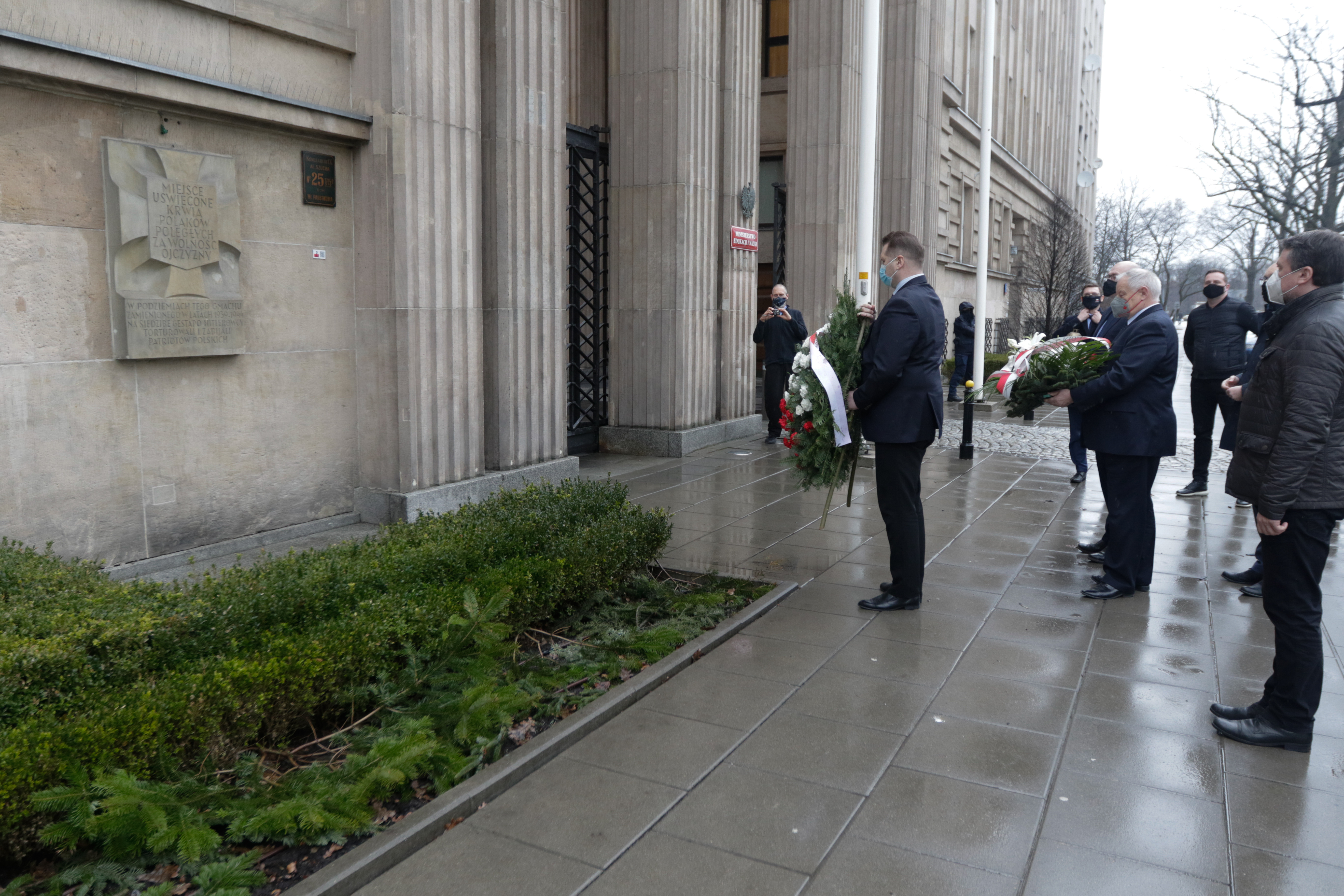 Dziś, 26 lutego Minister Edukacji i Nauki Przemysław Czarnek wziął udział w uroczystościach inaugurujących Narodowy Dzień Pamięci „Żołnierzy Wyklętych”. Minister złożył wieniec pod tablicą upamiętniającą Polaków Poległych za Wolność Ojczyzny, odwiedził Mauzoleum Walki i Męczeństwa i uczestniczył w ceremonii złożenia kwiatów przed tablicą upamiętniającą ofiary reżimu komunistycznego więzione w podziemiach Willi „Jasny Dom”.