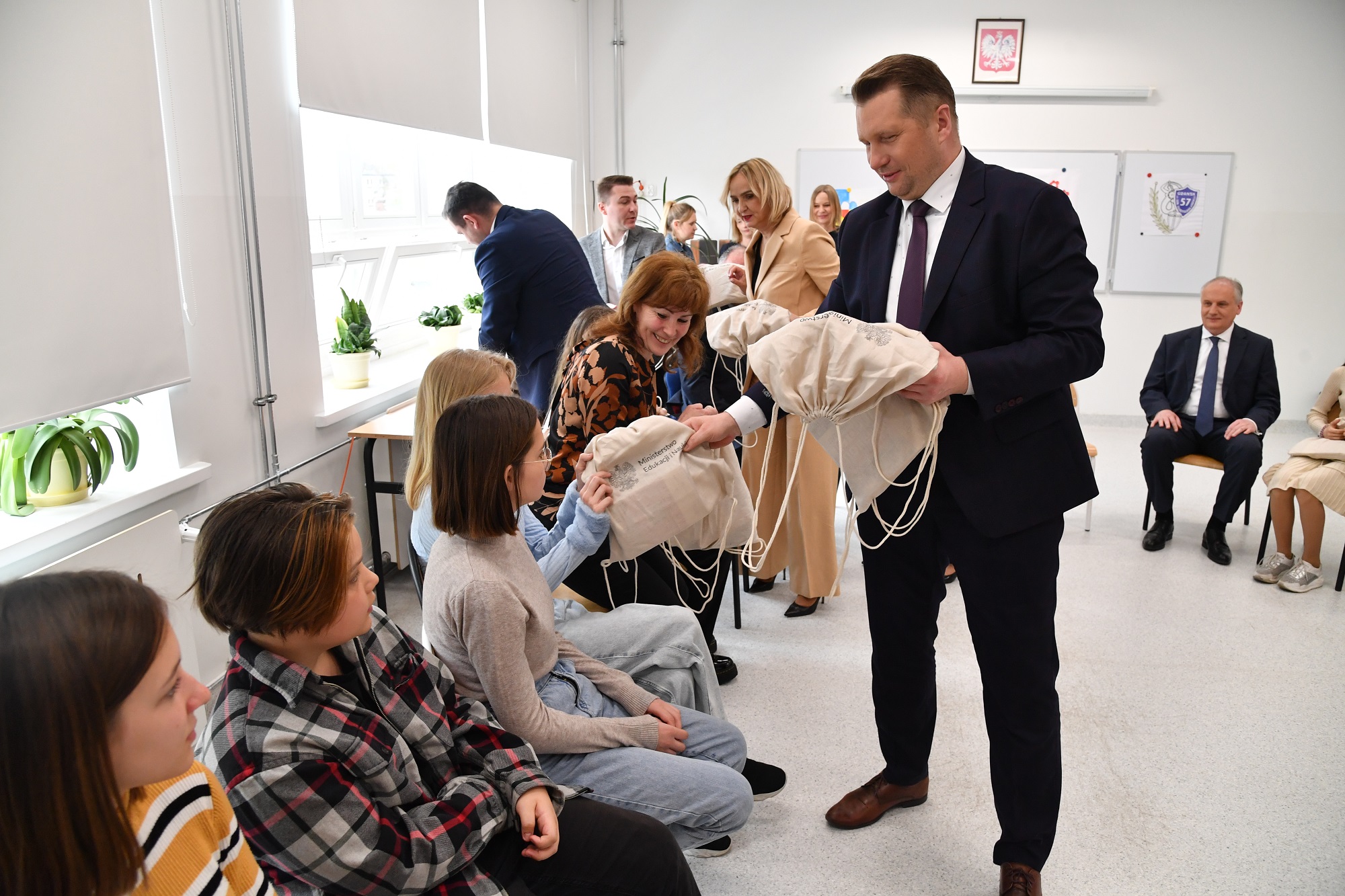 Podczas wizyty w Szkole Podstawowej nr 57 w Gdańsku, szef MEiN uczestniczył w zajęciach z polskimi i ukraińskimi uczniami. Rozmawiał z nimi m.in. o bezpieczeństwie dzieci ukraińskich w Polsce, o problemie dezinformacji w mediach społecznościowych oraz o relacjach polsko-ukraińskich.
