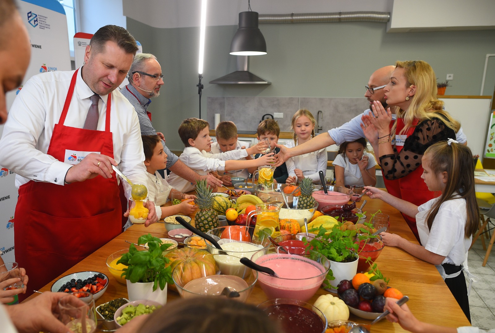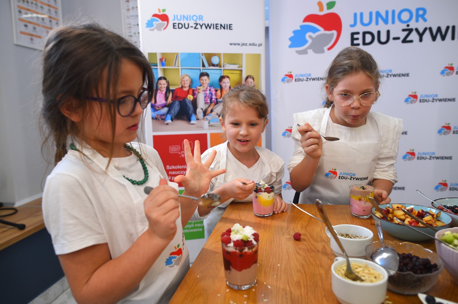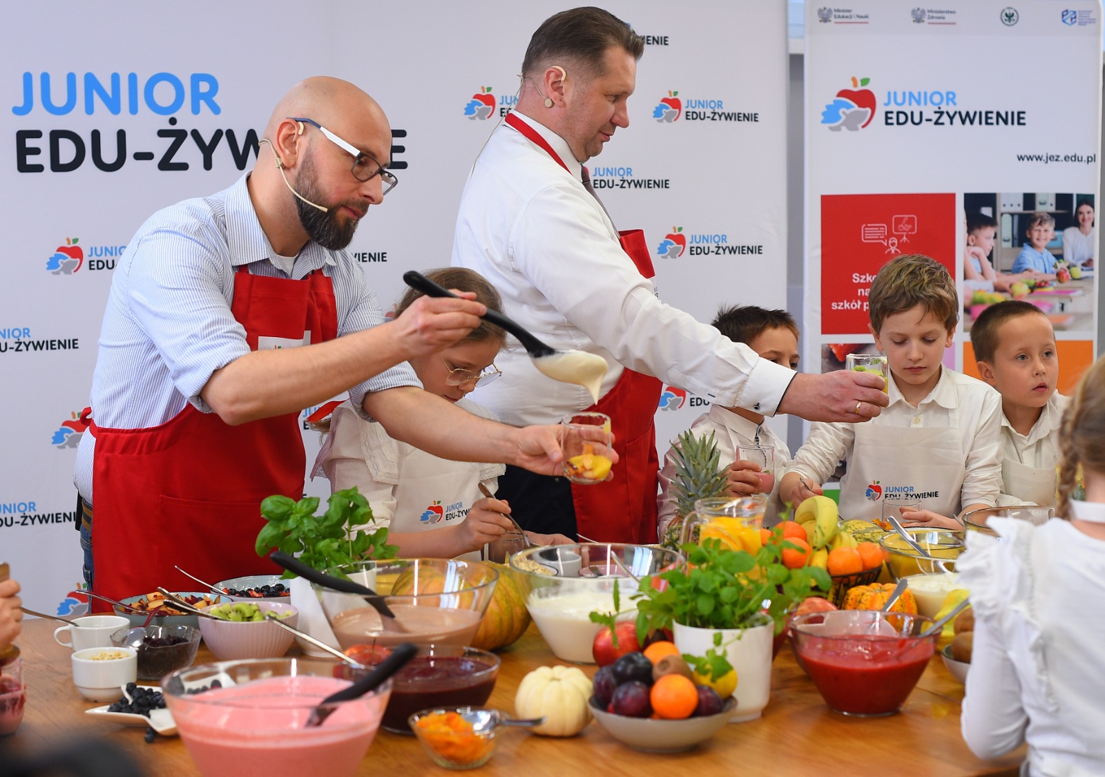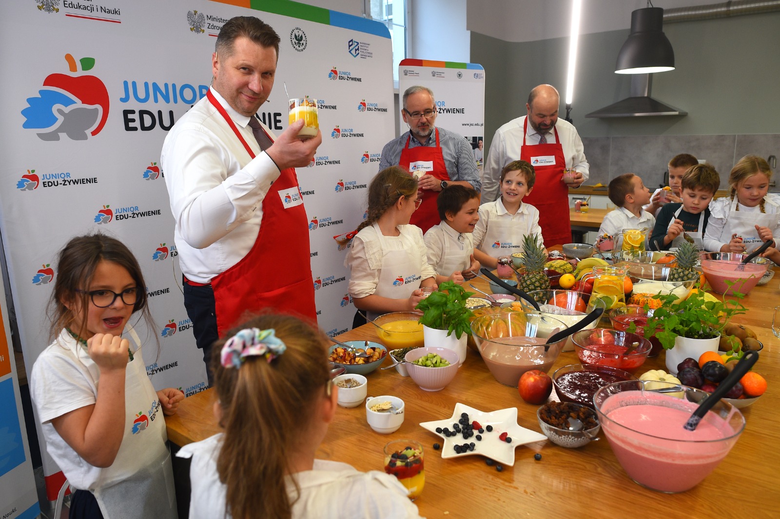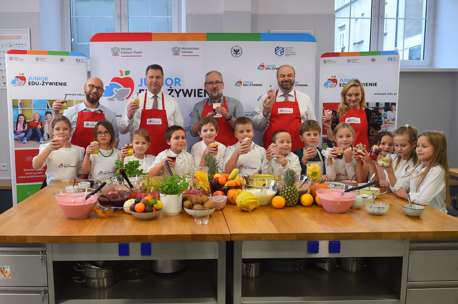 Program JEŻ zainaugurowały warsztaty edukacyjno-kulinarne. Uczniowie pod okiem doświadczonych dietetyków przygotowali pożywne, kolorowe i smaczne desery. Wcześniej rozmawiali na temat odpowiednio zbilansowanej diety. W przygotowanie zdrowych deserów zaangażowali się też ministrowie Przemysław Czarnek i Adam Niedzielski oraz rektor Szkoły Głównej Gospodarstwa Wiejskiego prof. dr hab. Michał Zasada.