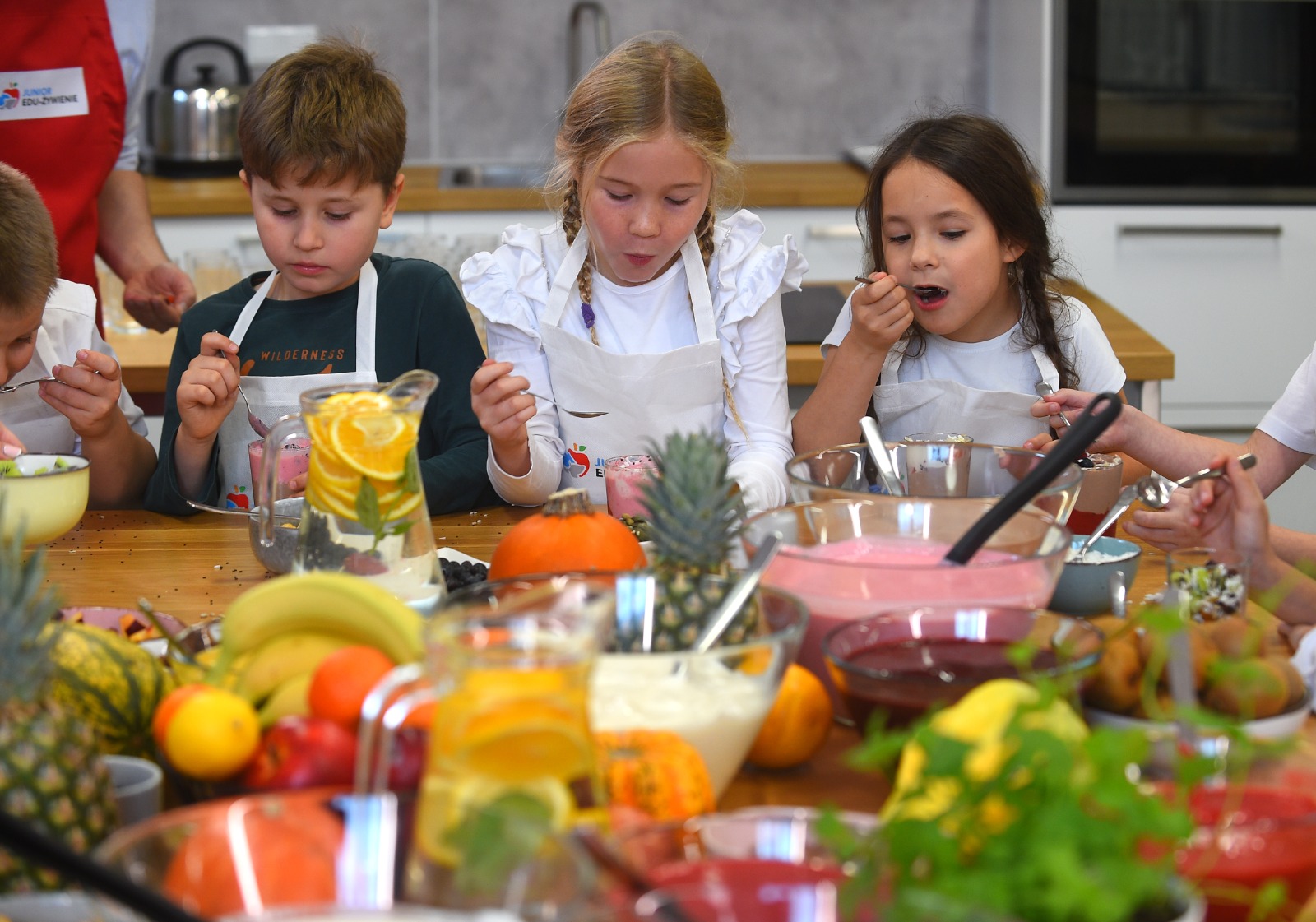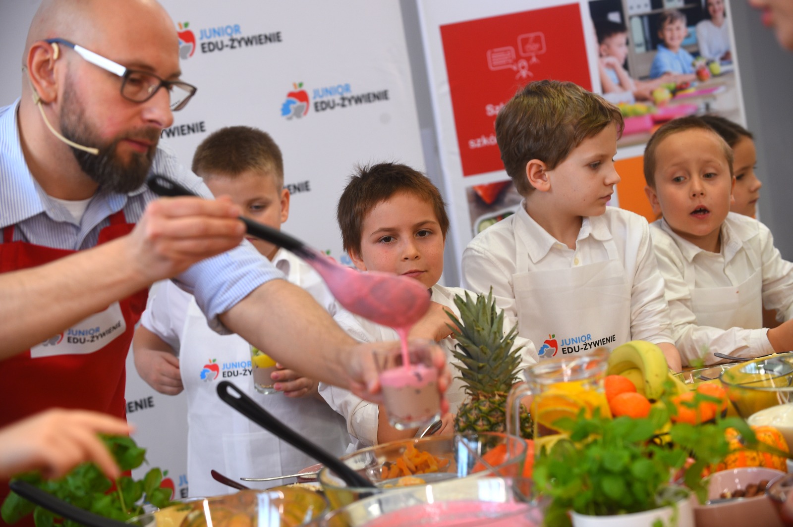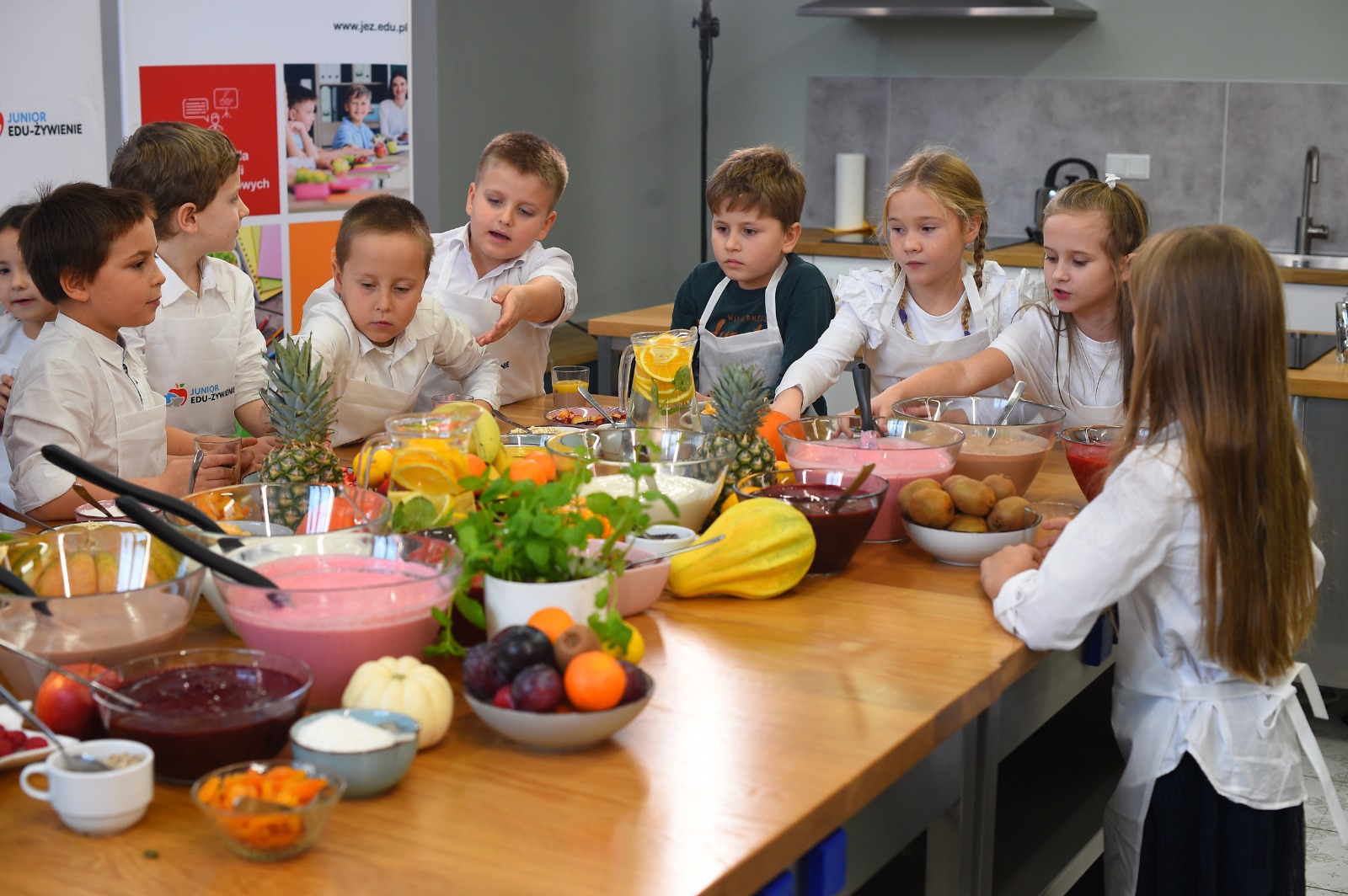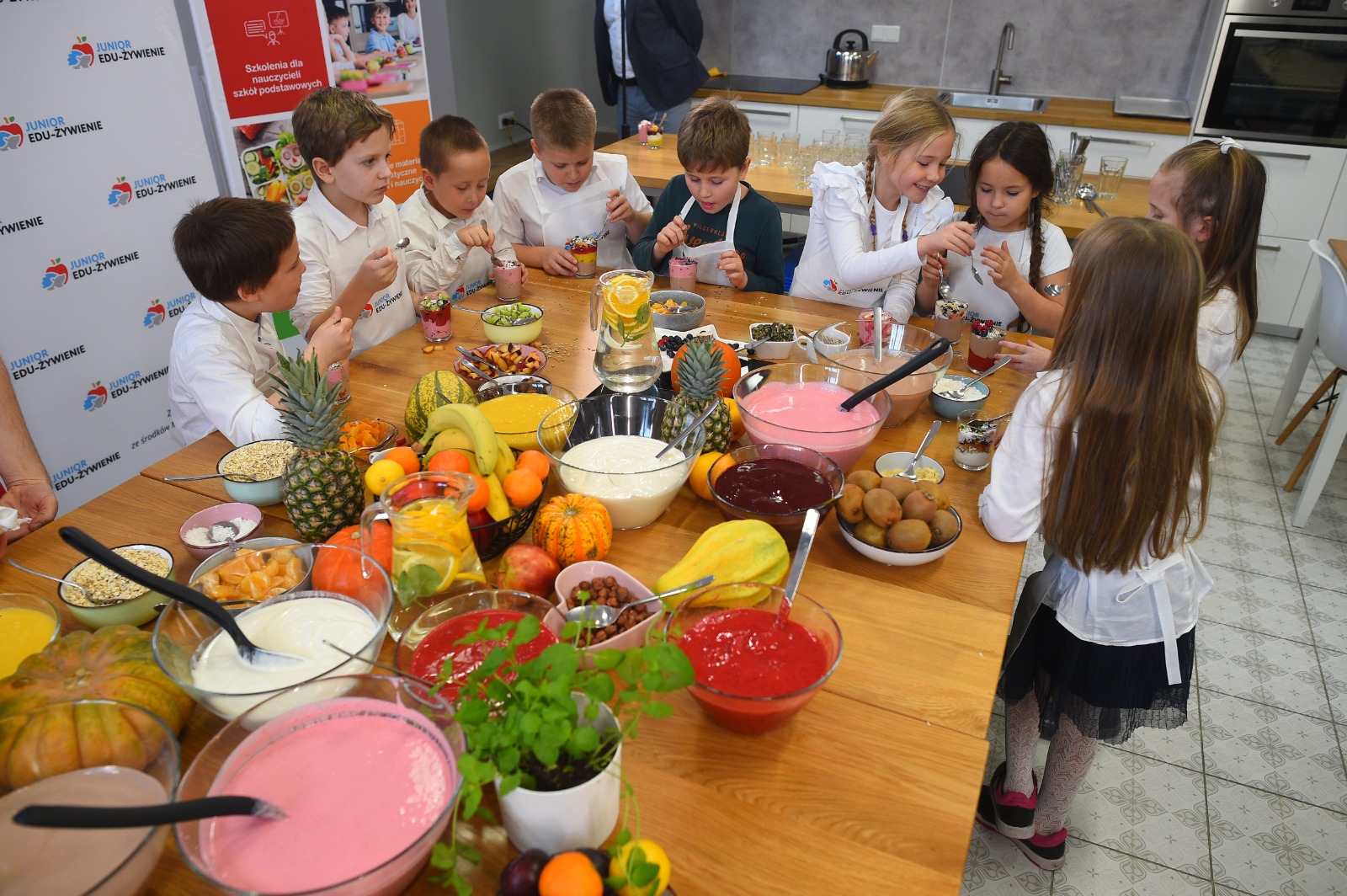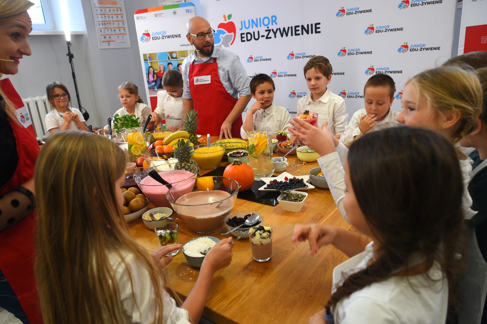 Program JEŻ zainaugurowały warsztaty edukacyjno-kulinarne. Uczniowie pod okiem doświadczonych dietetyków przygotowali pożywne, kolorowe i smaczne desery. Wcześniej rozmawiali na temat odpowiednio zbilansowanej diety. W przygotowanie zdrowych deserów zaangażowali się też ministrowie Przemysław Czarnek i Adam Niedzielski oraz rektor Szkoły Głównej Gospodarstwa Wiejskiego prof. dr hab. Michał Zasada.