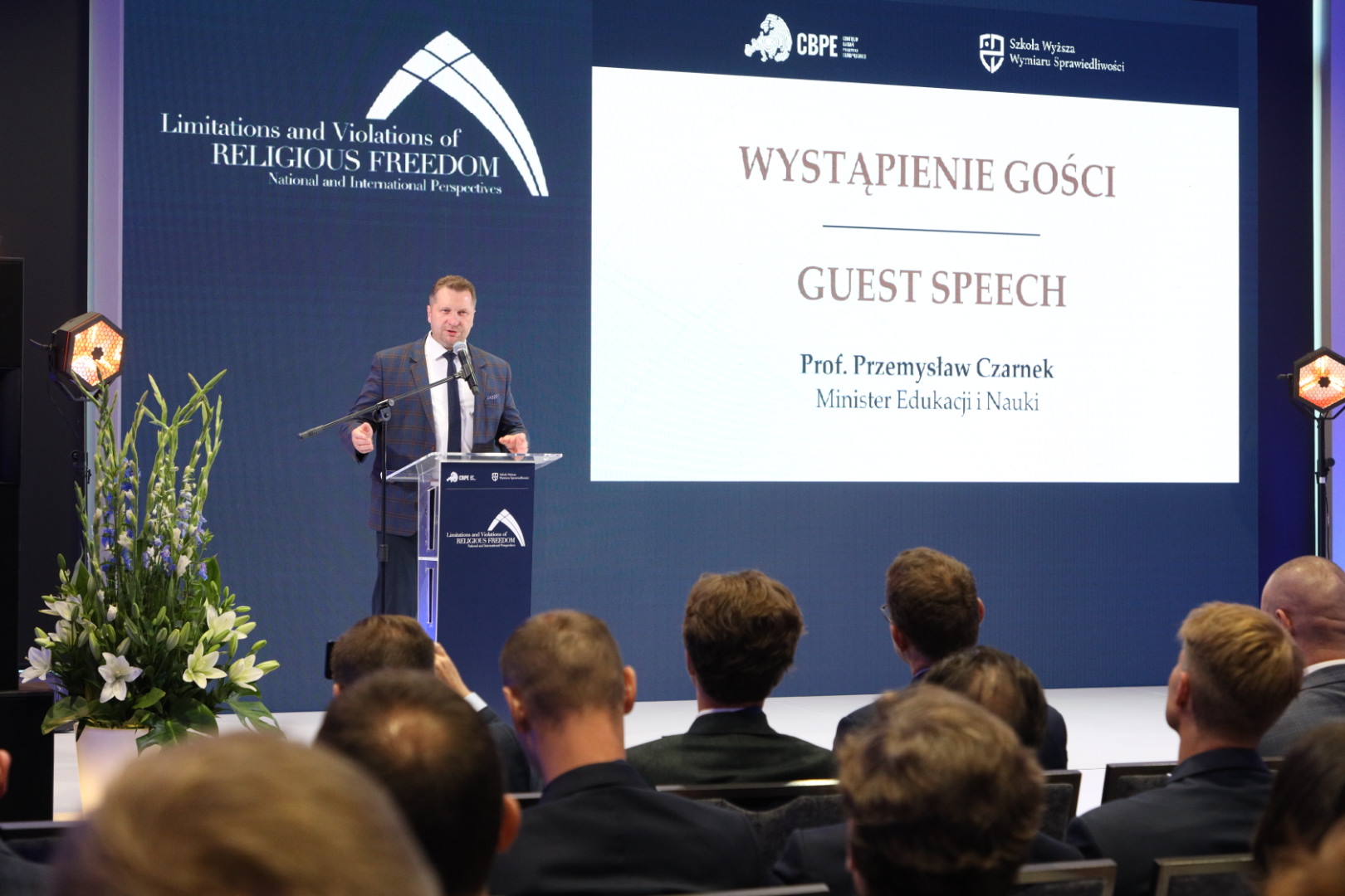 Szef MEiN wziął udział w międzynarodowej konferencji naukowej „Naruszenia i ograniczenia wolności religijnej. Perspektywa krajowa i międzynarodowa”. Wydarzenie zorganizowało Centrum Badań Polityki Europejskiej Szkoły Wyższej Wymiaru Sprawiedliwości. Podczas konferencji głos zabrali eksperci, naukowcy, przedstawiciele świata polityki i mediów.