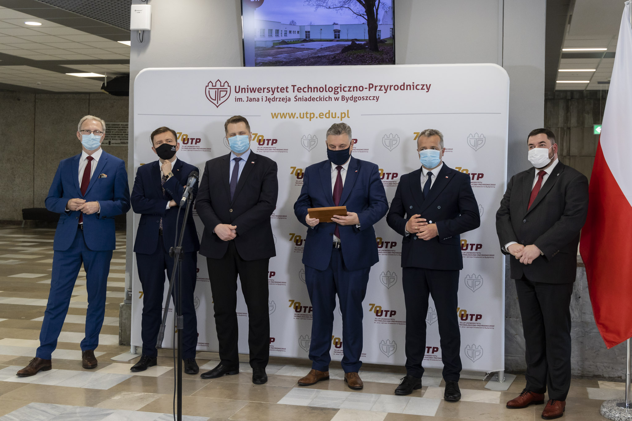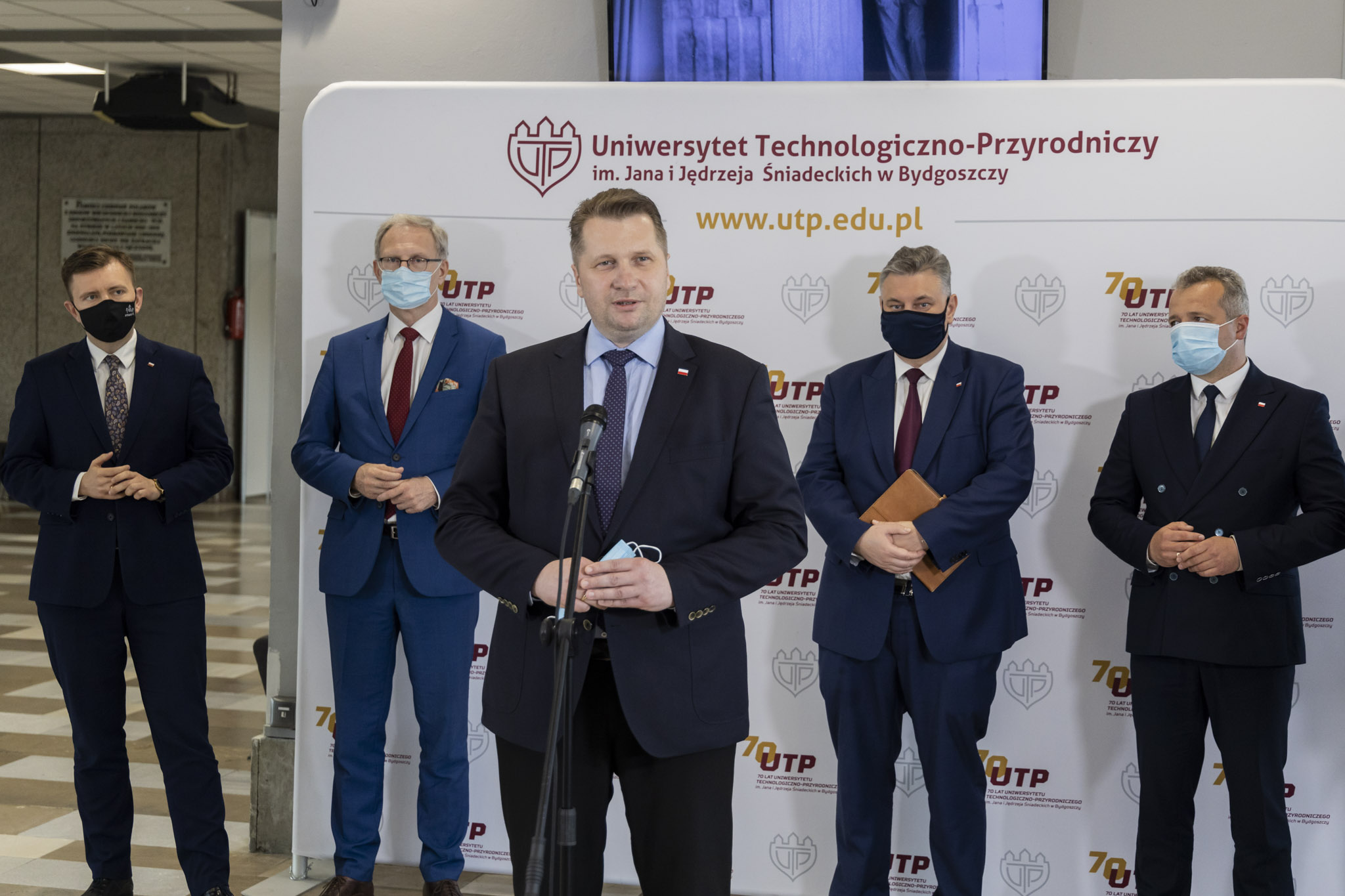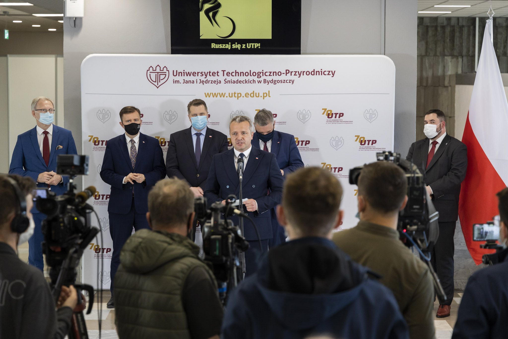 Konferencja prasowa z udziałem Ministra Edukacji i Nauki na Uniwersytecie Przyrodniczo-Technologicznym im. Jana i Jędrzeja Śniadeckich w Bydgoszczy