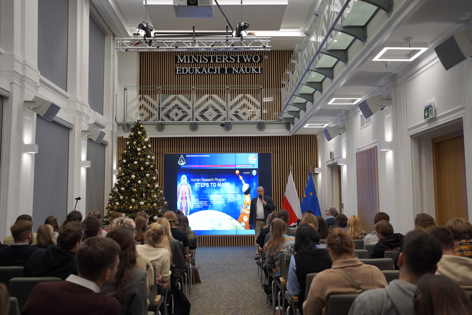 Przedstawiciele największych agencji kosmicznych spotkali się w Ministerstwie Edukacji i Nauki z polskimi studentami. Wydarzenie odbyło się przy okazji posiedzenia ISLSWG (International Space Life Science Working Group). Po raz pierwszy ta prestiżowa grupa robocza zebrała się w Polsce, aby rozmawiać o działaniach podejmowanych w zakresie nauk o życiu w kontekście badań prowadzonych w warunkach kosmicznych.
