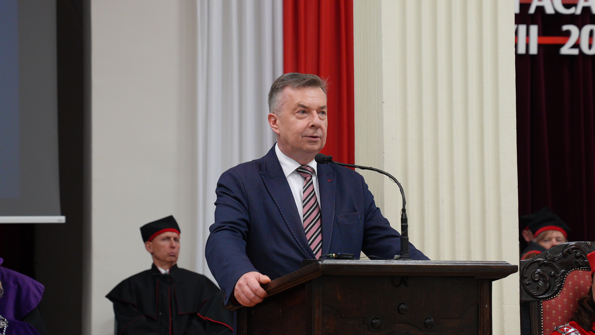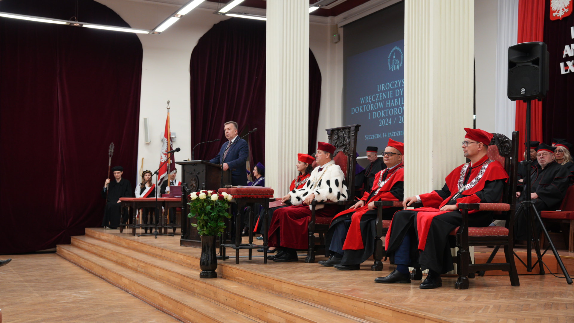 Minister Dariusz Wieczorek na uroczystości wręczenia dyplomów doktora i doktora habilitowanego w PUM w Szczecinie