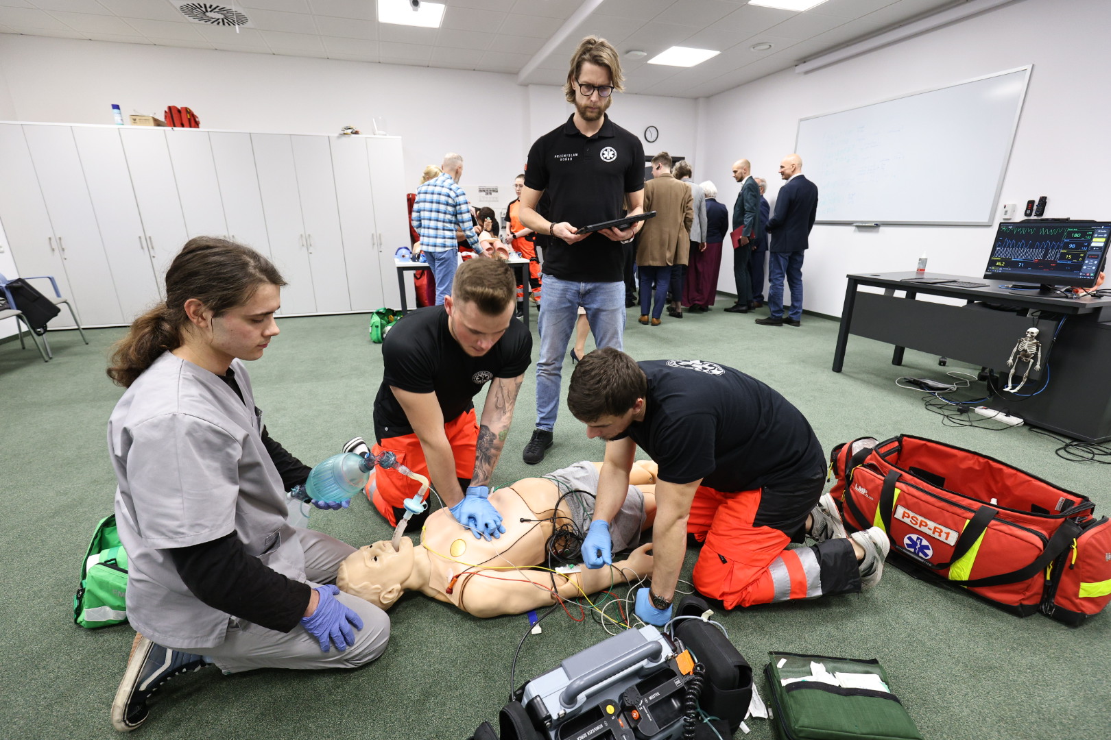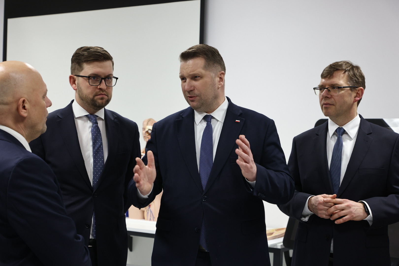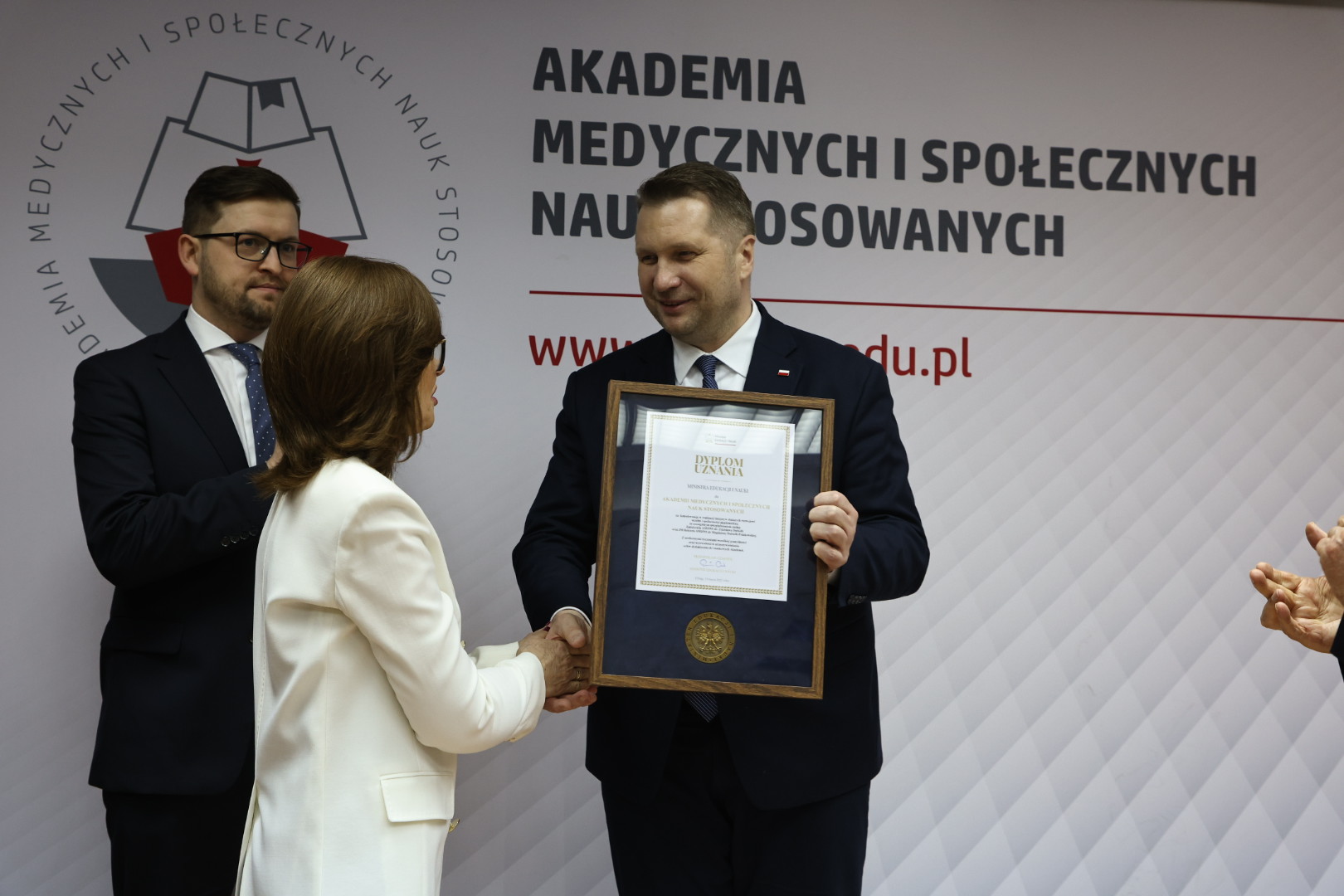 Minister odwiedził Akademię Medycznych i Społecznych Nauk Stosowanych. Szef MEiN uczestniczył m.in. w zajęciach biofizyki wraz ze studentami pierwszego roku kierunku lekarskiego, a także w warsztatach ze studentami ratownictwa medycznego, położnictwa i pielęgniarstwa.