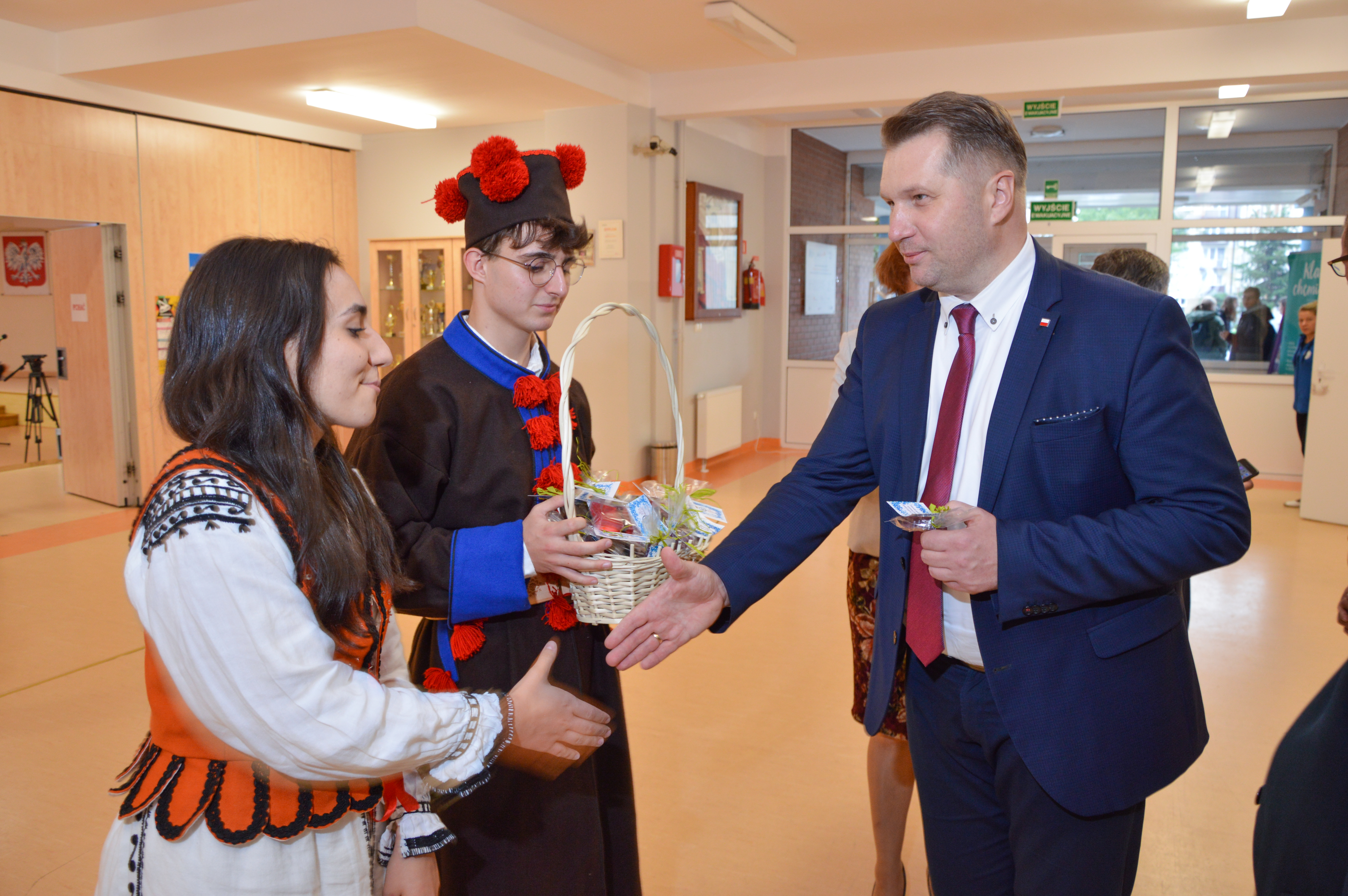 Minister na spotkaniu z uczniami Zespołu Szkół oraz uczestnikami projektu Erasmus+ w Nowej Sarzynie