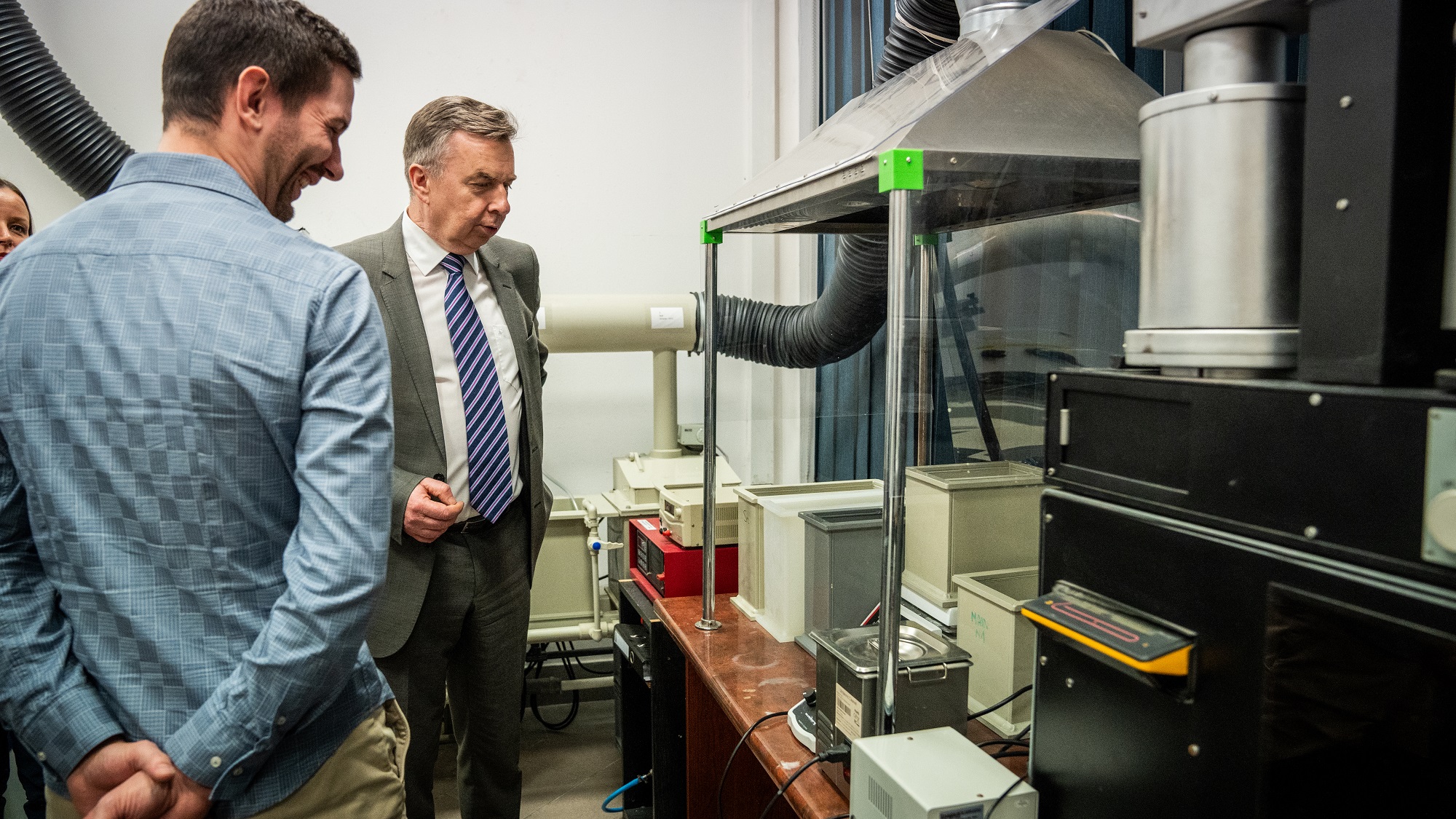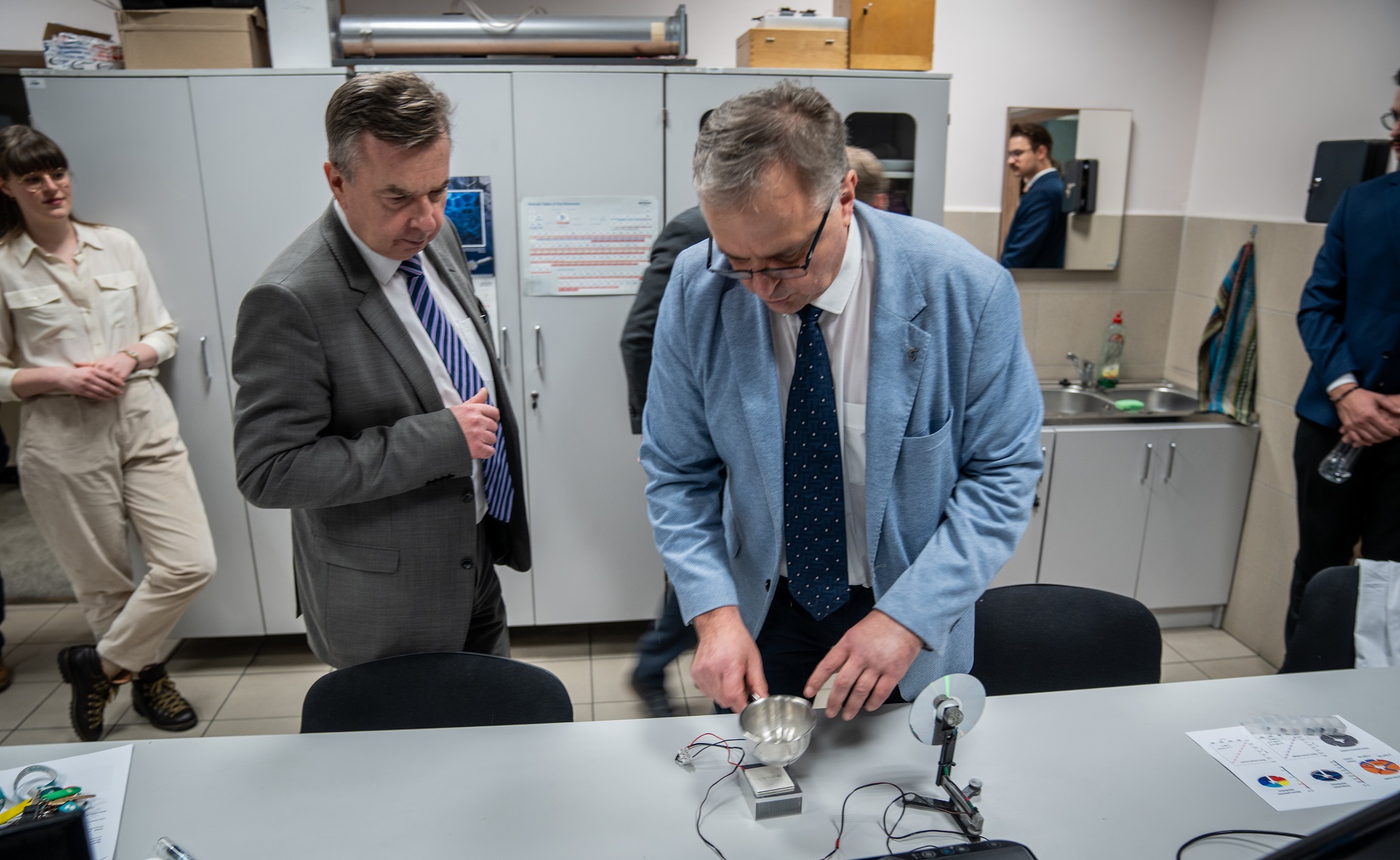 Podczas spotkania Minister Nauki Dariusz Wieczorek zapoznał się także z perspektywami rozwoju oraz możliwościami komercjalizacji innowacyjnego rozwiązania realizowanego na Wydziale Inżynierii Materiałowej i Ceramiki. To projekt wydajnych modułów termoelektrycznych, który może znaleźć szerokie zastosowanie w obszarze energetyki. Informacje o przedsięwzięciu przedstawili prof. Jerzy Jedliński, Dziekan Wydziału Inżynierii Materiałowej i Ceramiki oraz prof. Krzysztof Wojciechowski.