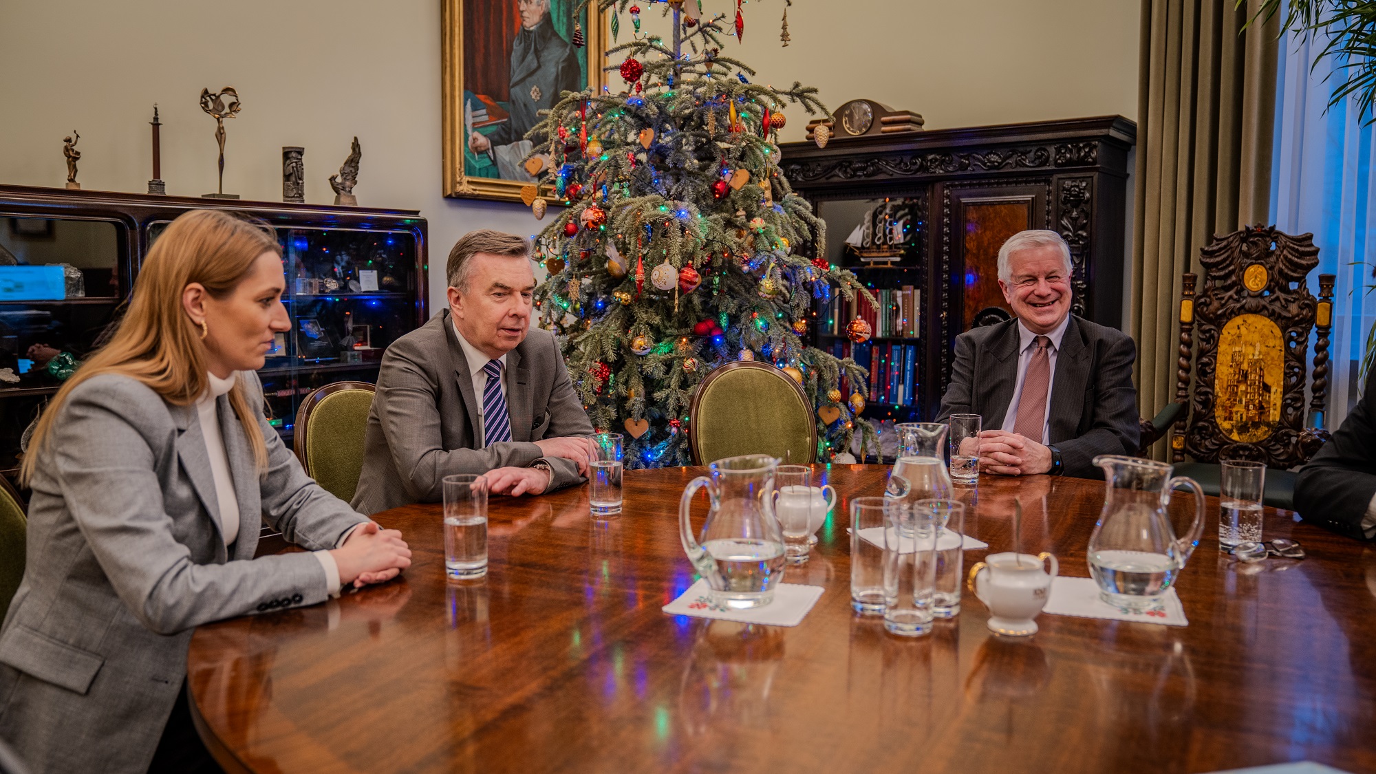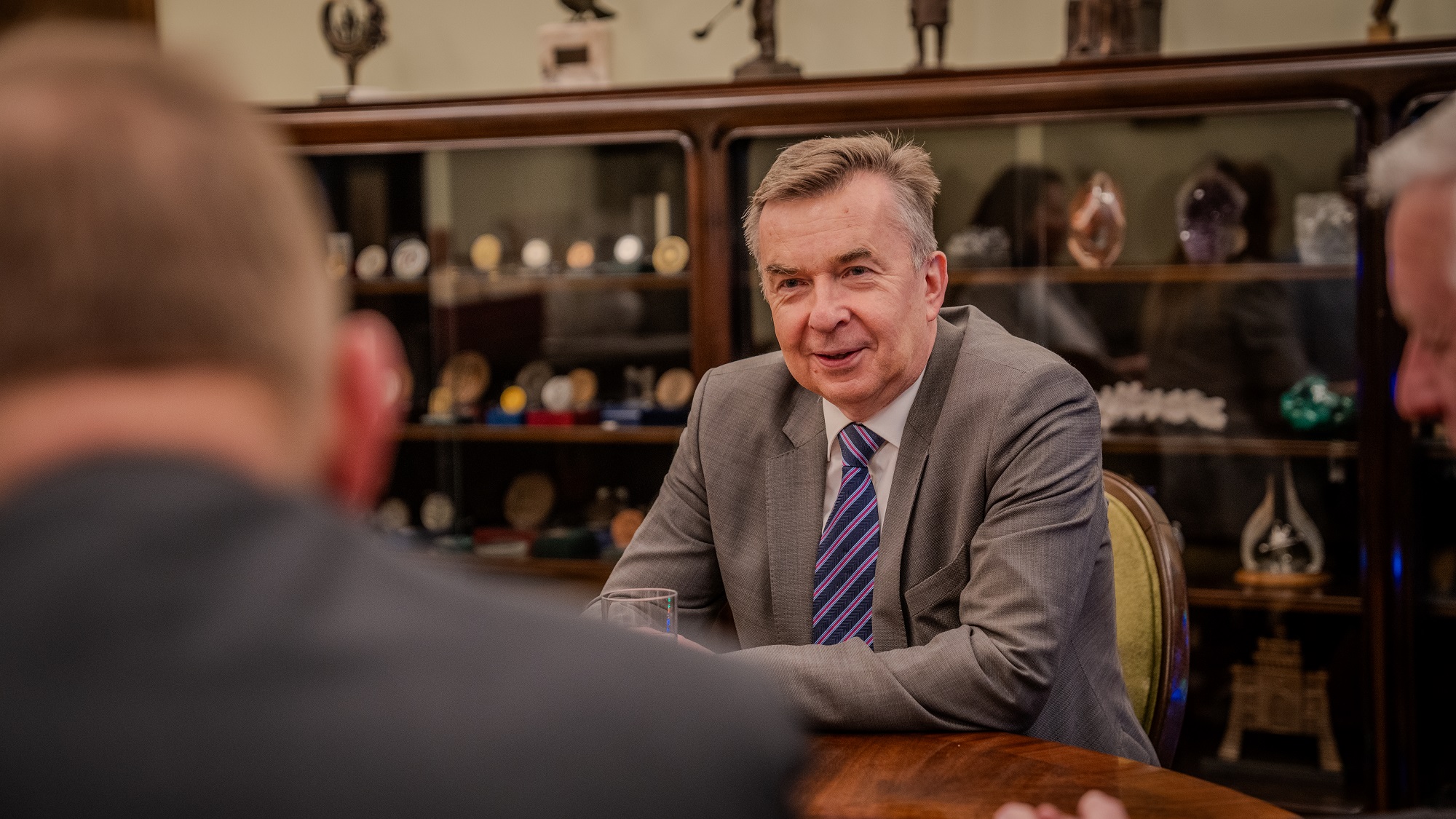 Prof. Jerzy Lis, Rektor AGH oraz prof. Rafał Wiśniowski, Prorektor ds. Współpracy przedstawili Ministrowi Dariuszowi Wieczorkowi szanse związane z organizacją i wdrożeniem polskiego oddziału akceleratora innowacji obronnych NATO w ramach programu DIANA (Defence Innovation Accelerator for the North Atlantic). O jego utworzenie starają się wspólnie AGH i Krakowski Park Technologiczny. Celem działań akceleracyjnych jest wsparcie rozwoju nowoczesnych technologii podwójnego zastosowania, które można wykorzystać na potrzeby bezpieczeństwa Sojuszu.