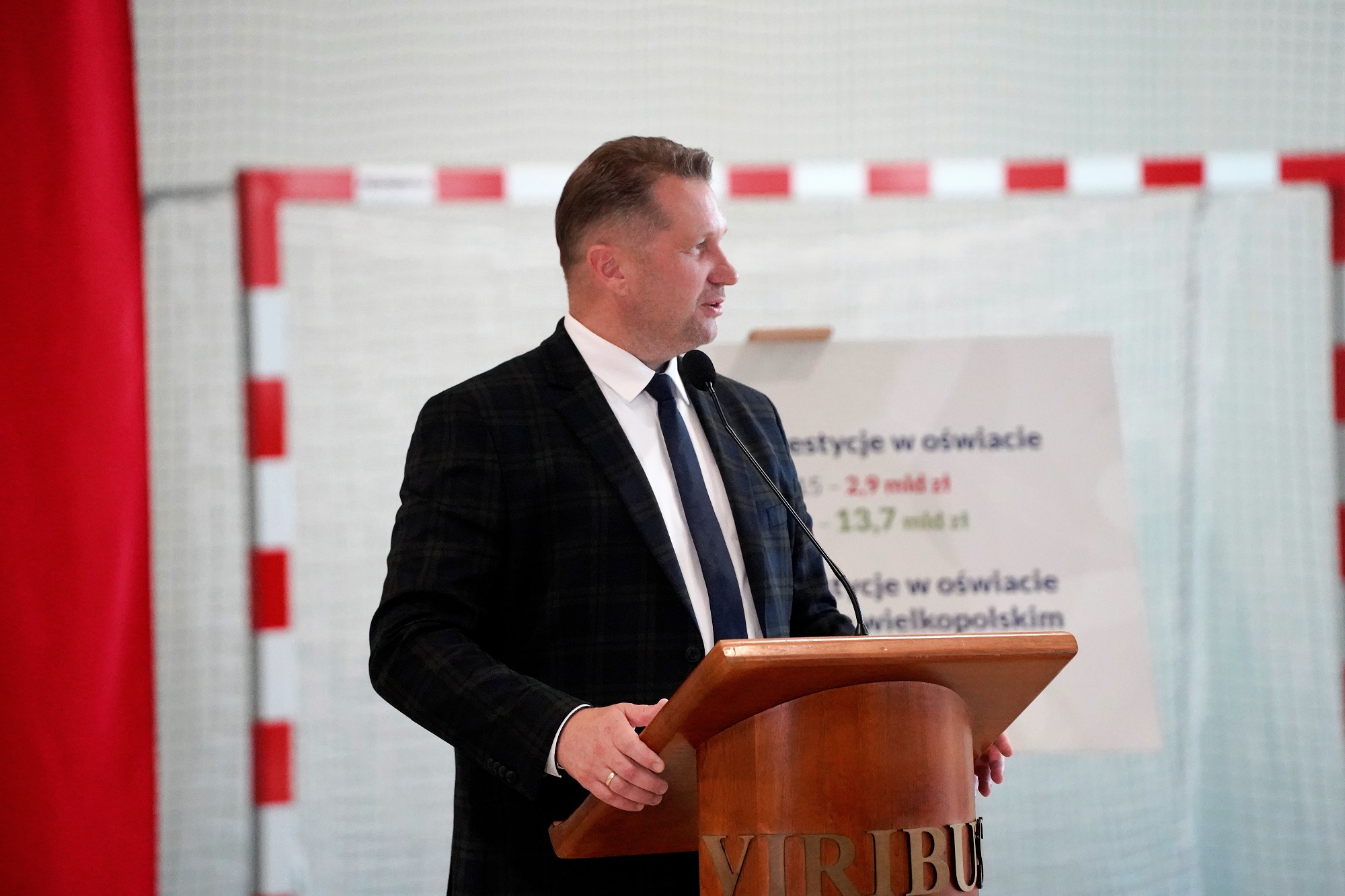 – Gratuluję inwestycji, bo inwestycja w oświatę to jest rzecz absolutnie zasadnicza. Wszystkie te inwestycje powodują, że mamy również ruch w gospodarce – mówił minister Przemysław Czarnek podczas wydarzenia i zwrócił uwagę, iż realizowane inwestycje dają możliwość rozwoju lokalnym firmom.