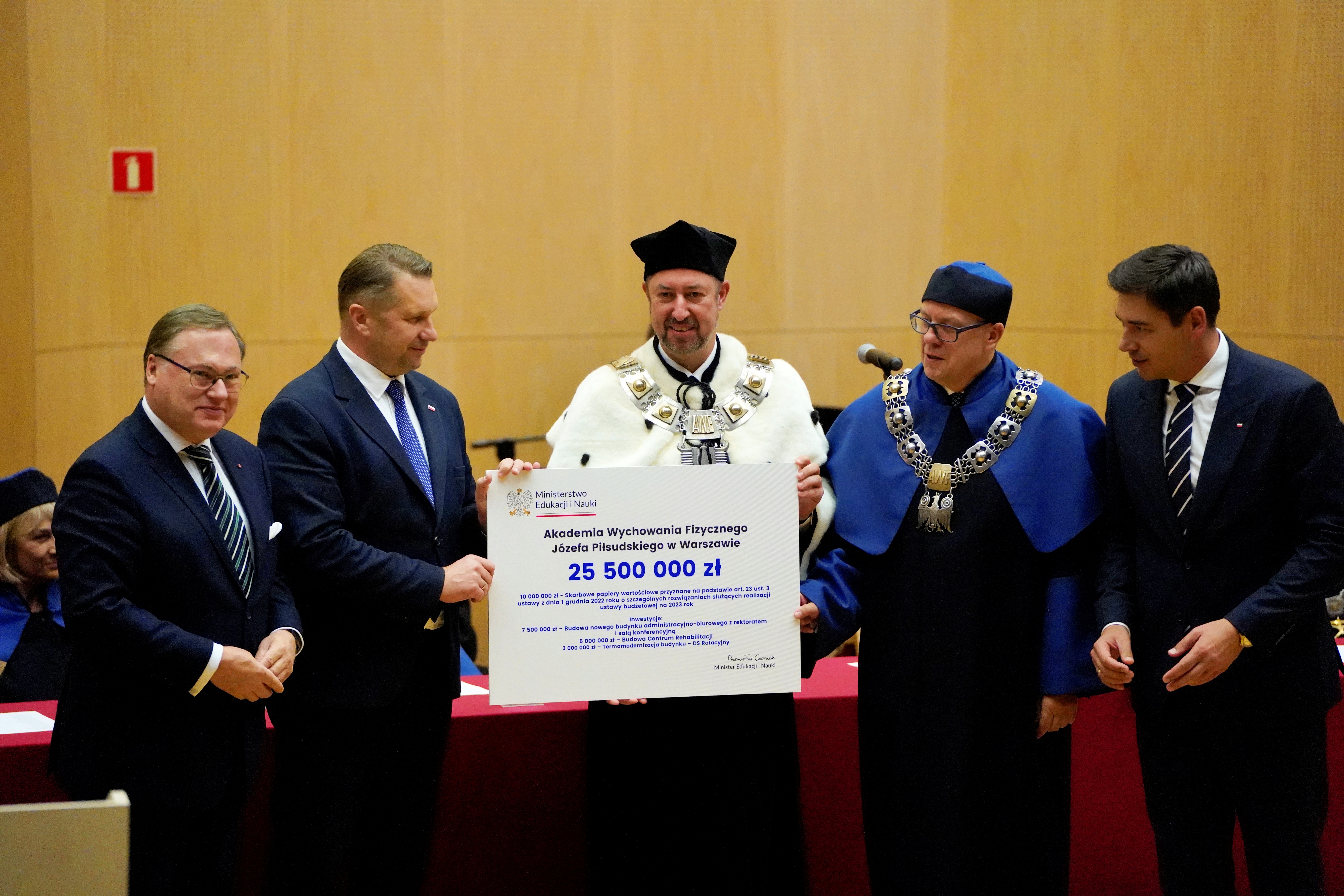 Szef MEiN przekazał na ręce władz uczelni czek o wartości 25,5 mln zł na dalszy rozwój naukowo-badawczy Filii AWF w Białej Podlaskiej. Wsparcie finansowe obejmuje: