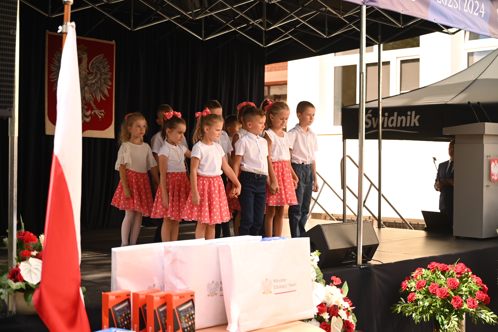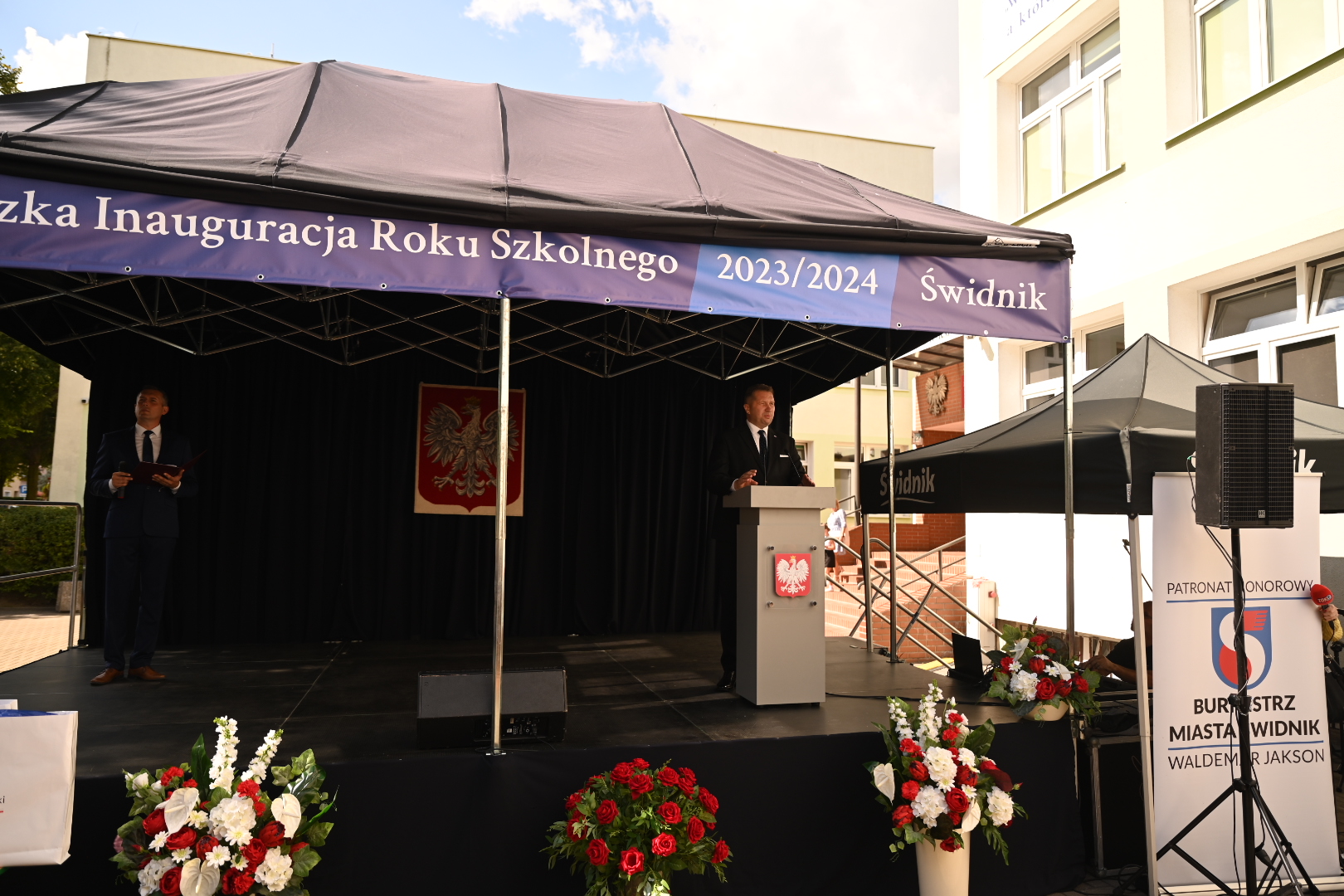 Minister Przemysław Czarnek zwrócił uwagę na poprawę jakości infrastruktury oświatowej w polskich szkołach. – W nowy rok szkolny 2023/2024 wchodzimy pełni optymizmu. A optymizm ten czerpiemy z potężnych inwestycji zarówno tych materialnych, jak i tych inwestycji w ludzi – wskazywał szef MEiN.