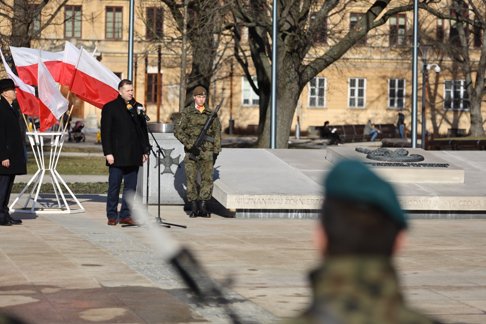 W czasie uroczystości złożono kwiaty i zapalono znicze na płycie Pomnika Nieznanego Żołnierza.