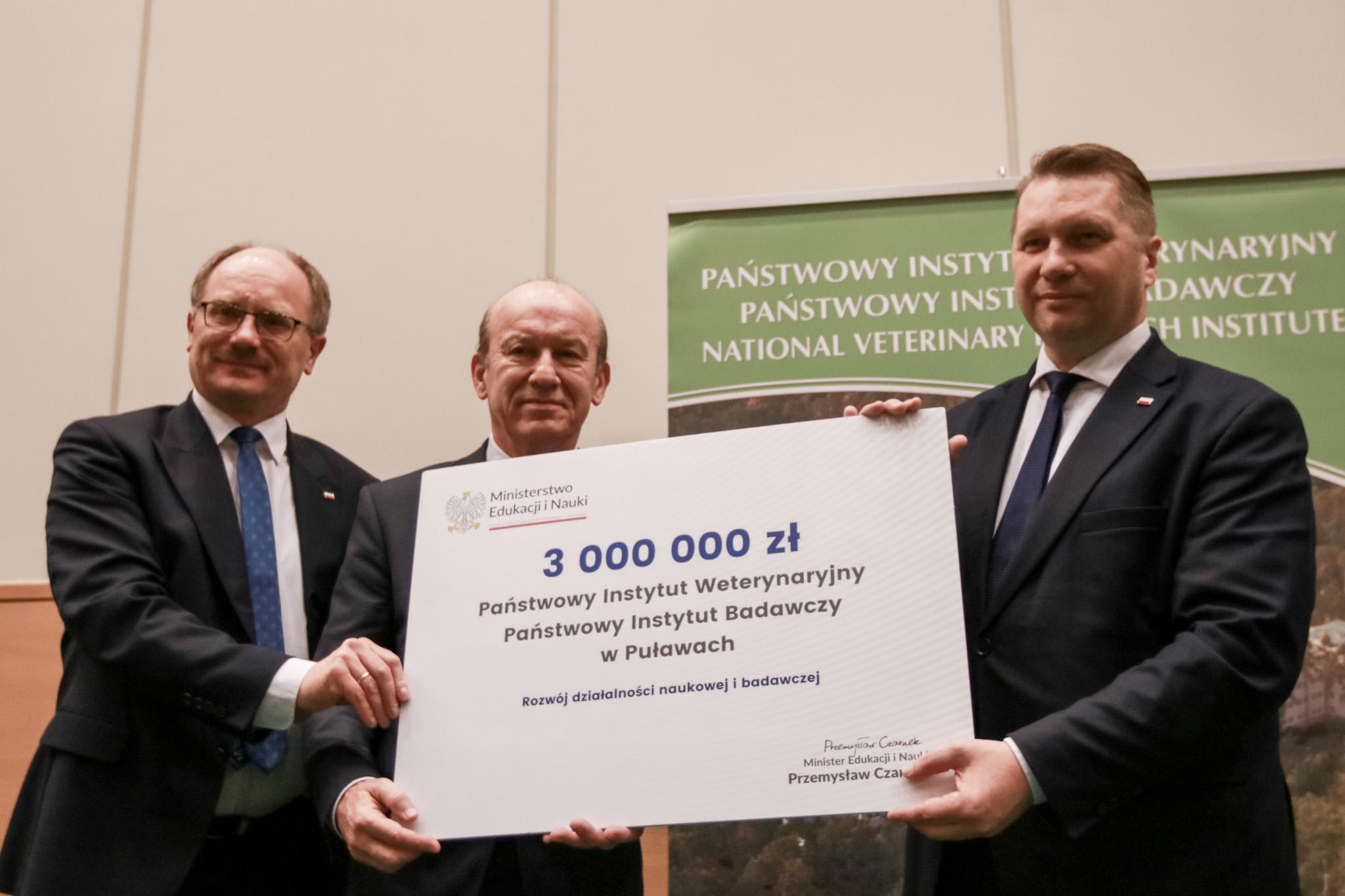 Podczas wizyty w Państwowym Instytucie Weterynaryjnym – Państwowym Instytucie Badawczym w Puławach minister Przemysław Czarnej wręczył symboliczny czek na kwotę 3 mln zł na rozwój działalności naukowej i badawczej. Jednocześnie szef MEiN zapowiedział zmiany systemowe m.in. w zakresie regulacji płacowych w instytutach badawczych.