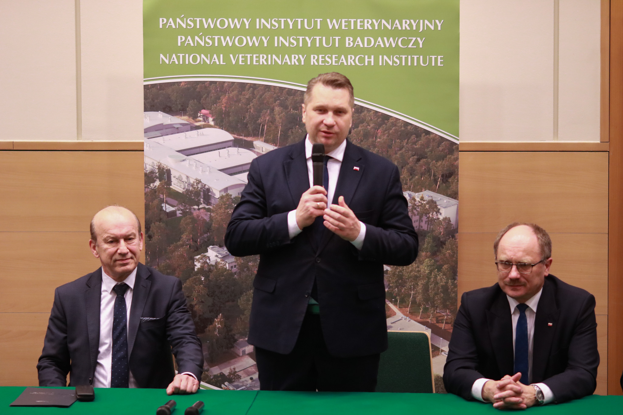 Minister Przemysław Czarnek z wizytą w Państwowym Instytucie Weterynaryjnym w Puławach